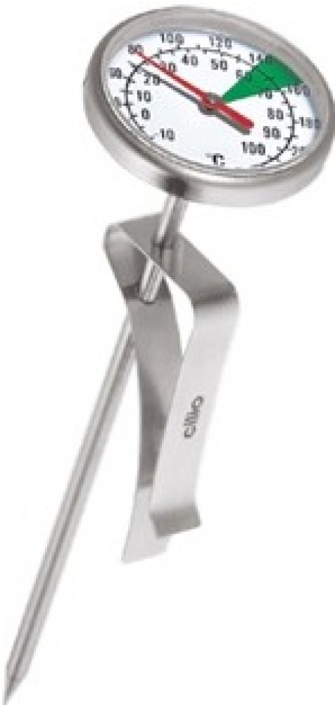 Orfeo Coffee teploměr na mléko se sponou – Perfektní kontrola teploty pro vaši mléčnou pěnu. Orfeo Coffee teploměr na mléko se sponou je nepostradatelným nástrojem pro dosažení dokonalé teploty mléka při přípravě cappuccina, latte nebo macchiata. Díky přesnému měření teploty vám tento teploměr umožní zahřát mléko na ideální teplotu pro vytvoření bohaté a krémové pěny. Spona zajišťuje pevné uchycení na konvičku, takže budete mít teploměr vždy pod kontrolou. Tento teploměr je vhodný jak pro domácí baristy, tak pro profesionály v kavárnách.