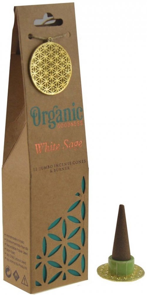 Organic vonných organických kuželů s keramickým stojánkem White Sage 12 ks
