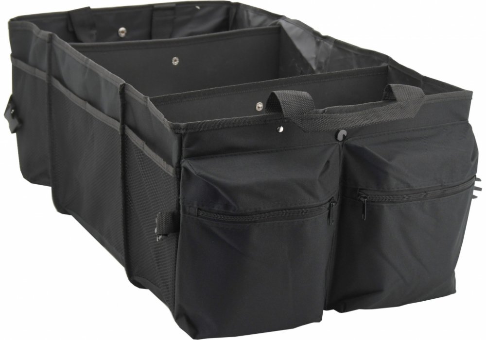 Čelní strana je opatřena dvěma objemnými kapsami, zadní strana objemnou kapsou na suchý zip. Na jedné straně je organizér doplněn o sítěnou kapsu a na straně druhé dalšími kapsami. Po naplnění organizéru je možná manipulace díky našitým madlům.