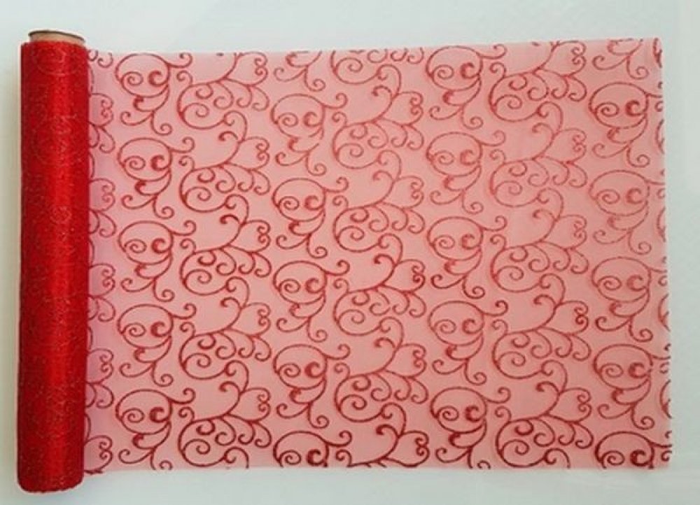 Organza 36 36cm x 4,5m glitrovaná červená (Organza ; stolování ; svatba ; party ; oslava ; dekorace)
