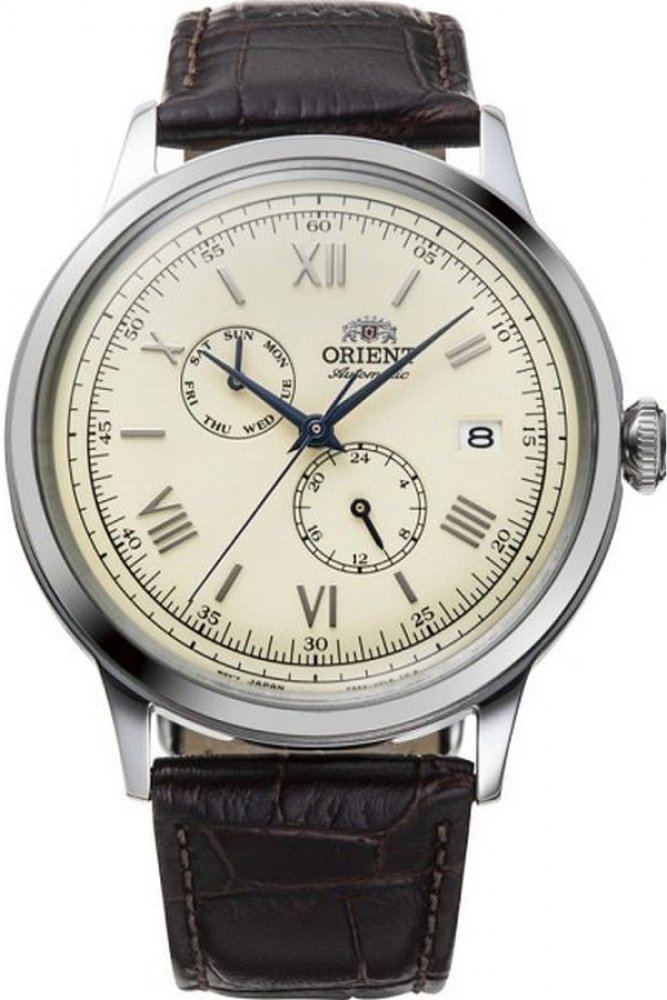 Orient analogové kůže ocel 30 m automatické 60 g minerální elegantní pánské automatické bez osazení Bambino II kulaté hnědá béžová na přezku 2.1 cm bez svícení s občasnou údržbou (automatické) bez chytrých funkcí na ruku s římskými číslicemi pevná ocel 41 mm