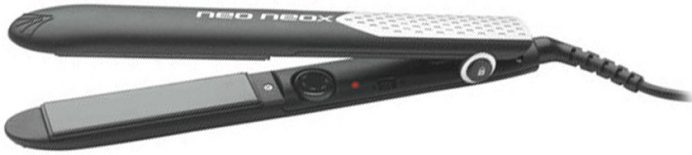 Černá žehlička na vlasy s dlouhými keramickými deskami (100 mm) pro krásně uhlazené vlasy.