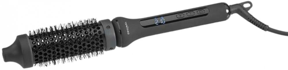 Profesionální nahřívací kulatý kartáč Original Best Buy Styleox II o průměru 43 mm s keramickým tělem a ionizační technologií je ideální pro vytvoření dokonalého objemu a oživení zplihlých, suchých vlasů. Nylonové štětiny usnadňují styling a umožňují snadno vytvarovat i jemné vlny. Teplotu lze nastavit v rozmezí 80 °C až 210 °C, přičemž aktuální teplota se zobrazuje na LCD displeji. Přístroj se nahřívá velmi rychle, má ergonomicky tvarovanou rukojeť, paměťovou funkci, otočný kabel a automatické bezpečnostní vypnutí po 60 minutách.Barva: černáPrůměr kartáče: 43 mmPrůměr kartáče včetně štětin: 50 mmTechnologie:Ionizační technologie - generátor produkuje miliony očisťujících negativních iontů, což způsobuje, že vlasy zůstávají hydratované; hydratace zabraňuje krepatění vlasů, má regenerační účinky, zanechává vlasy jemné, lesklé, lehce rozčesatelné a zvětšuje jejich objemKeramický povrch - zajišťuje rovnoměrné rozložení tepla, minimalizuje poškození vlasů a dodává jim hladký, lesklý vzhledVlastnosti:- nahřívací kulatý kartáč- nylonové štětiny- ideální pro vytvoření velkého objemu- vytváří vlny- oživení zplihlých vlasů- určený pouze na suché vlasy- LCD displej- ergonomická rukojeť- nastavitelná teplota od 80 °C do 210 °C- bezpečnostní automatické vypínání- paměťová funkce- otočný kabelUpozornění: Kartáč nefouká, pouze hřeje!