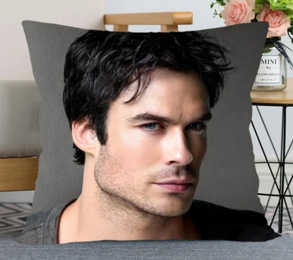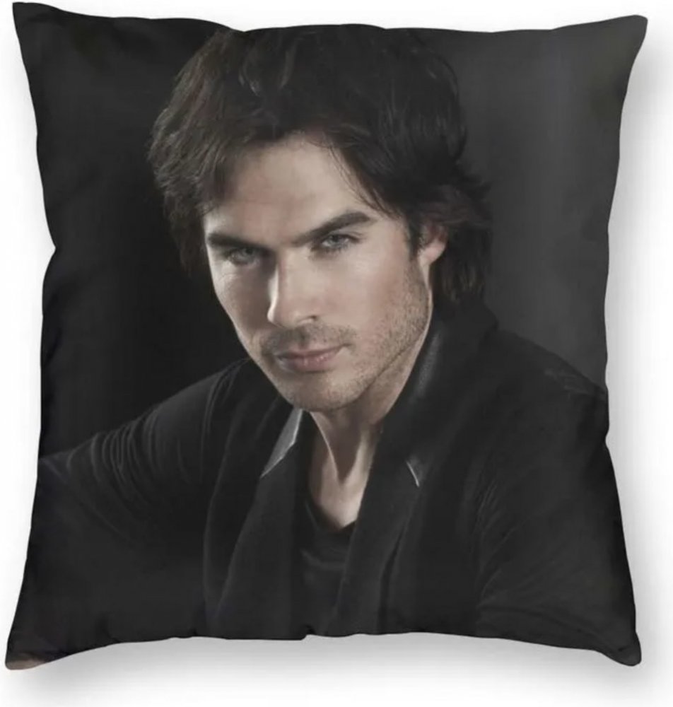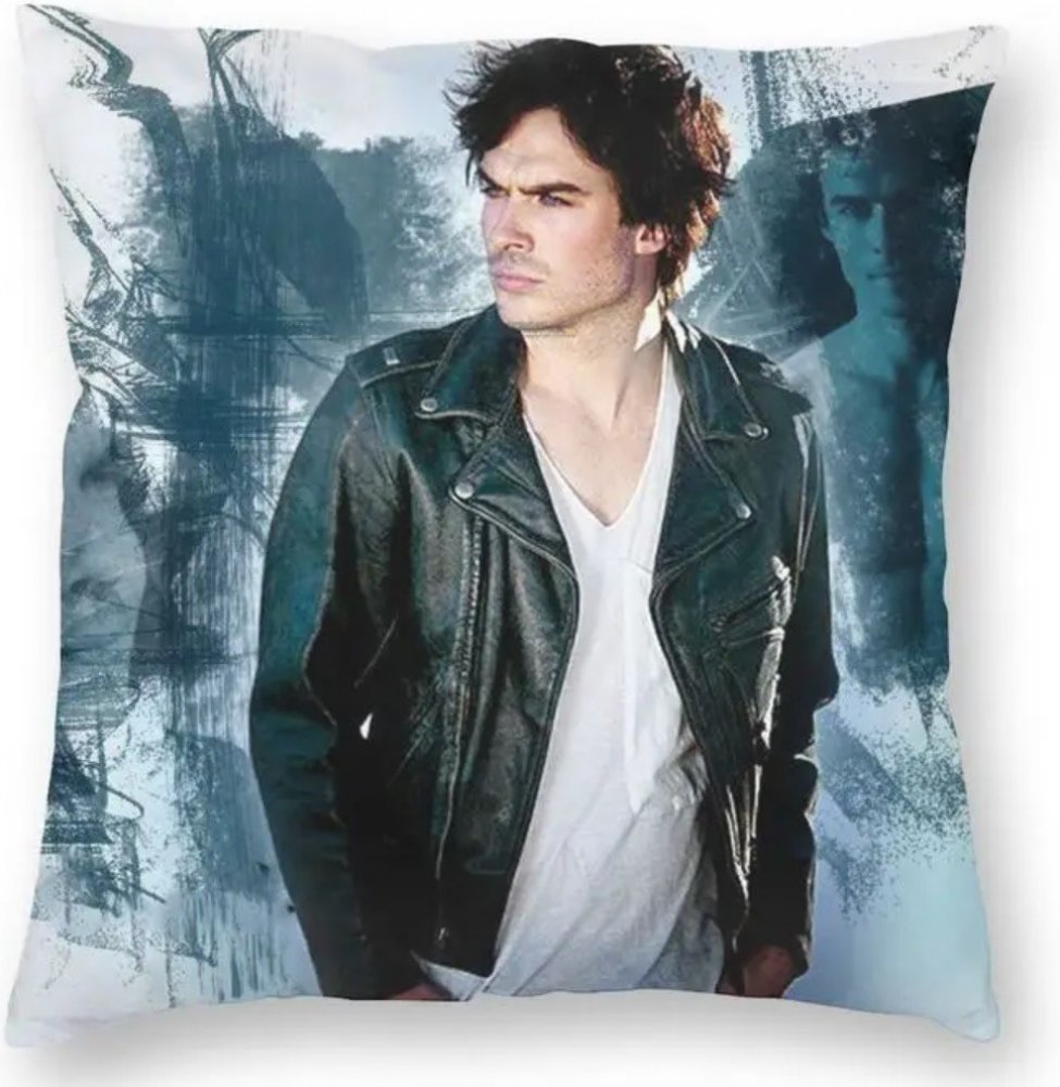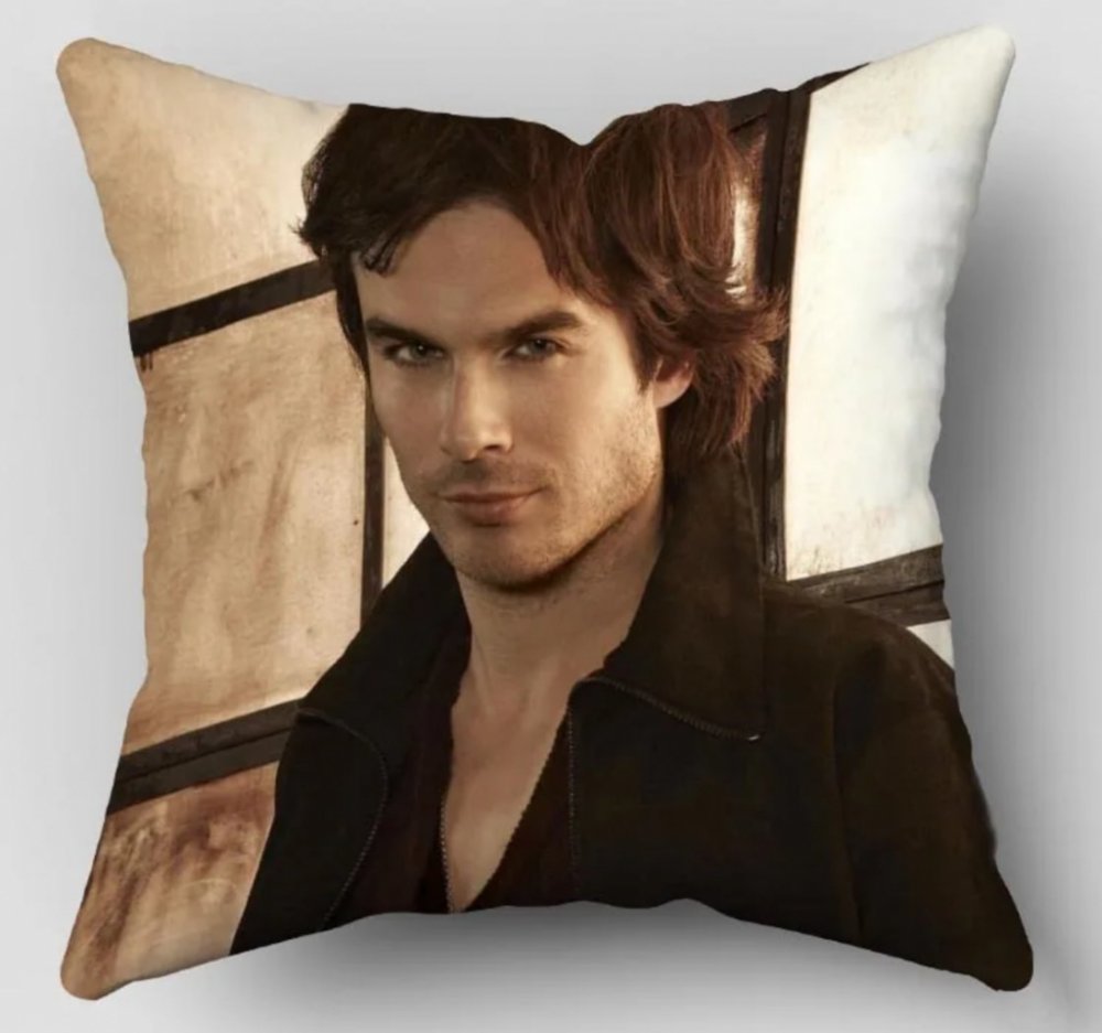 Povlak na polštář The Vampire Diaries (Upíří deníky) se třemi hlavními postavami, které se dostanou do milostného trojúhelníku - Elena Gilbert a bratři Damon a Stefan Salvatore.