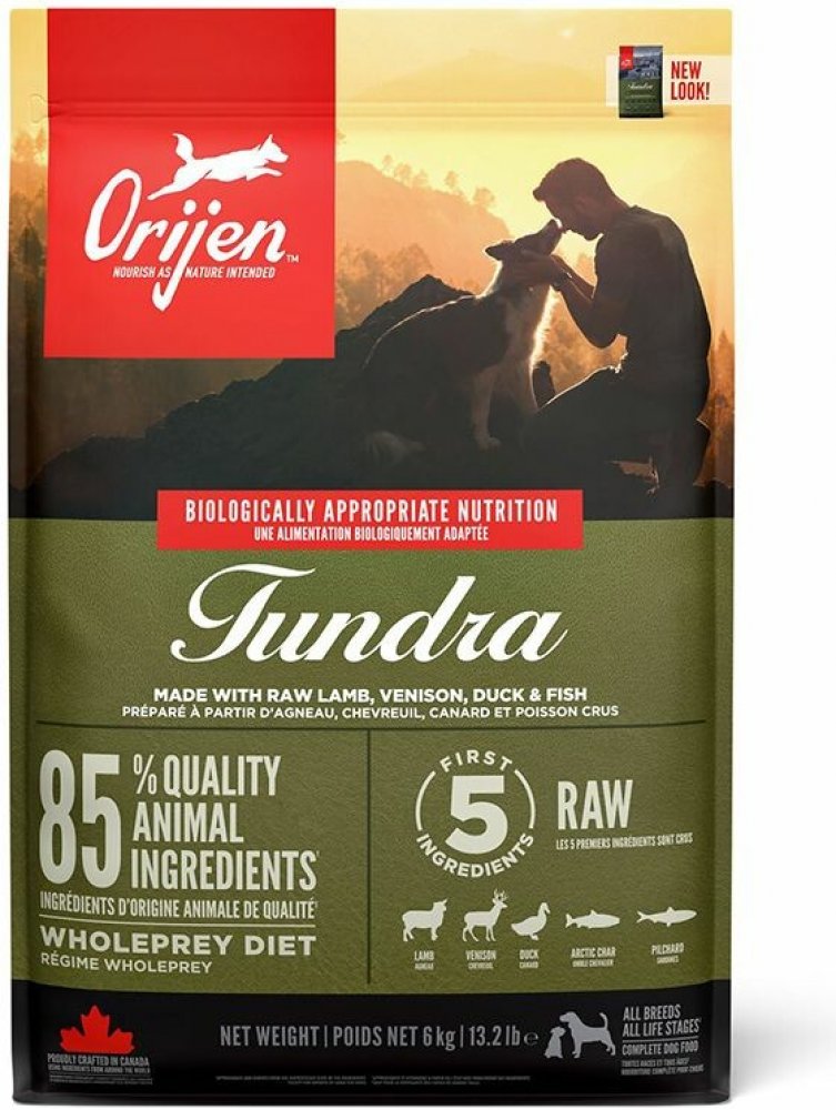 Champion Petfoods bez omezení věku pro všechna plemena s vysokou aktivitou jehněčí Orijen 6 kg superprémiové suché měkké Tundra 38.0 % bylinky TUNDRA z Kanady 18 % 5 % 1.8 % 1.3 % 9 % 9 % 0 % vysoká deklarováno (>40%) standardní podporující (>24%) snadný přechod aktivní (probiotika) možné plná (země + dodavatel)