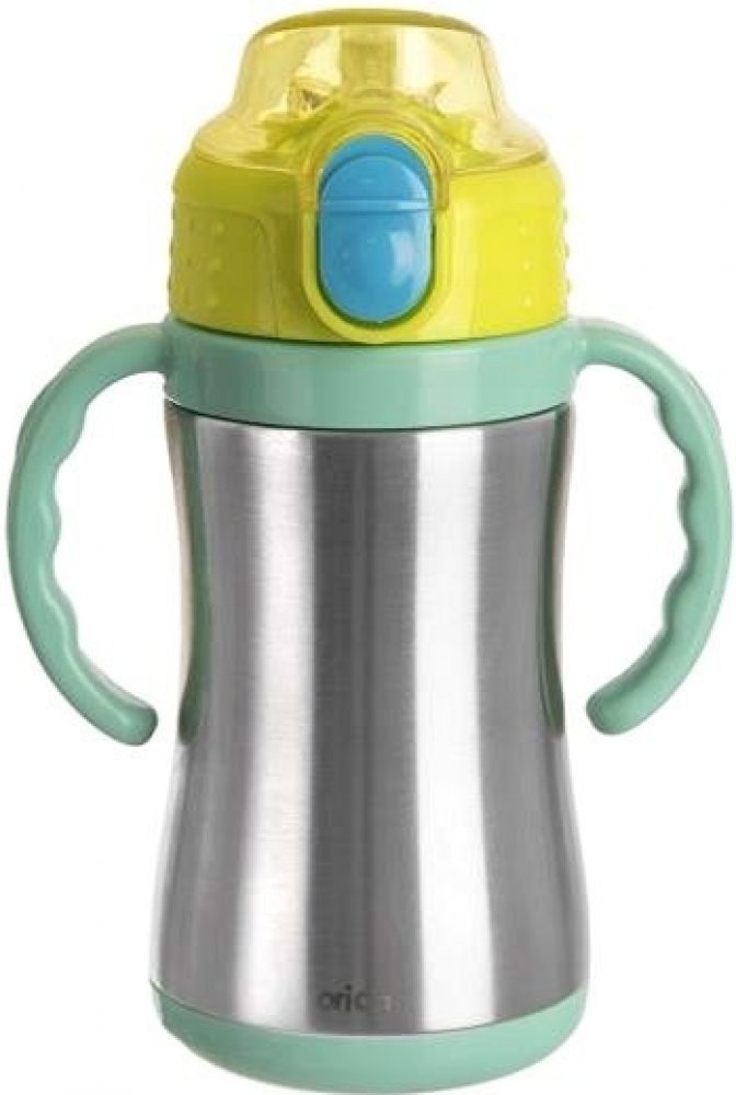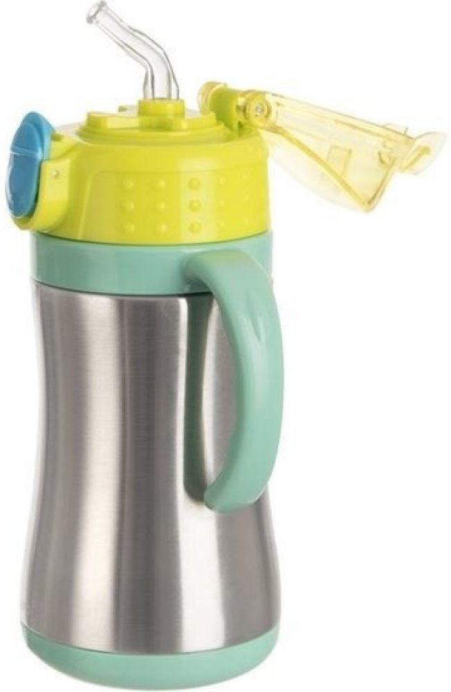 uvnitř vložené dlouhé brčko umožní pít nápoj bez toho, aniž by uživatel musel termosku naklánět