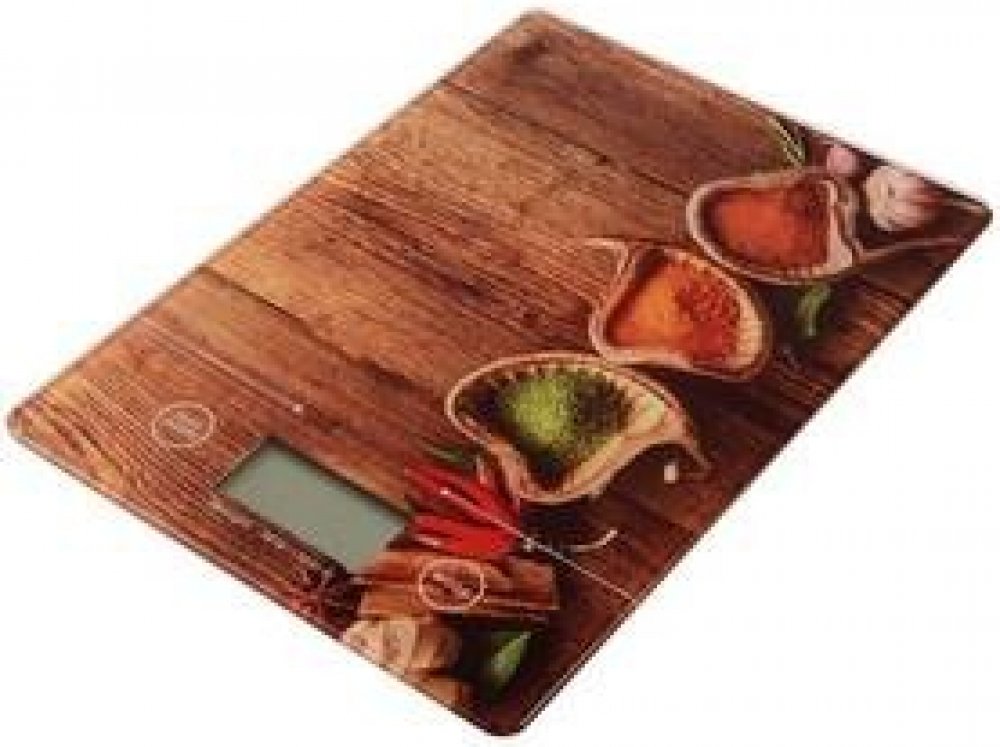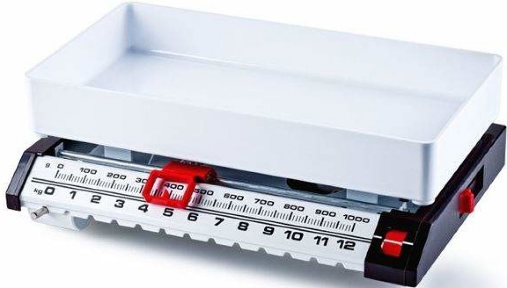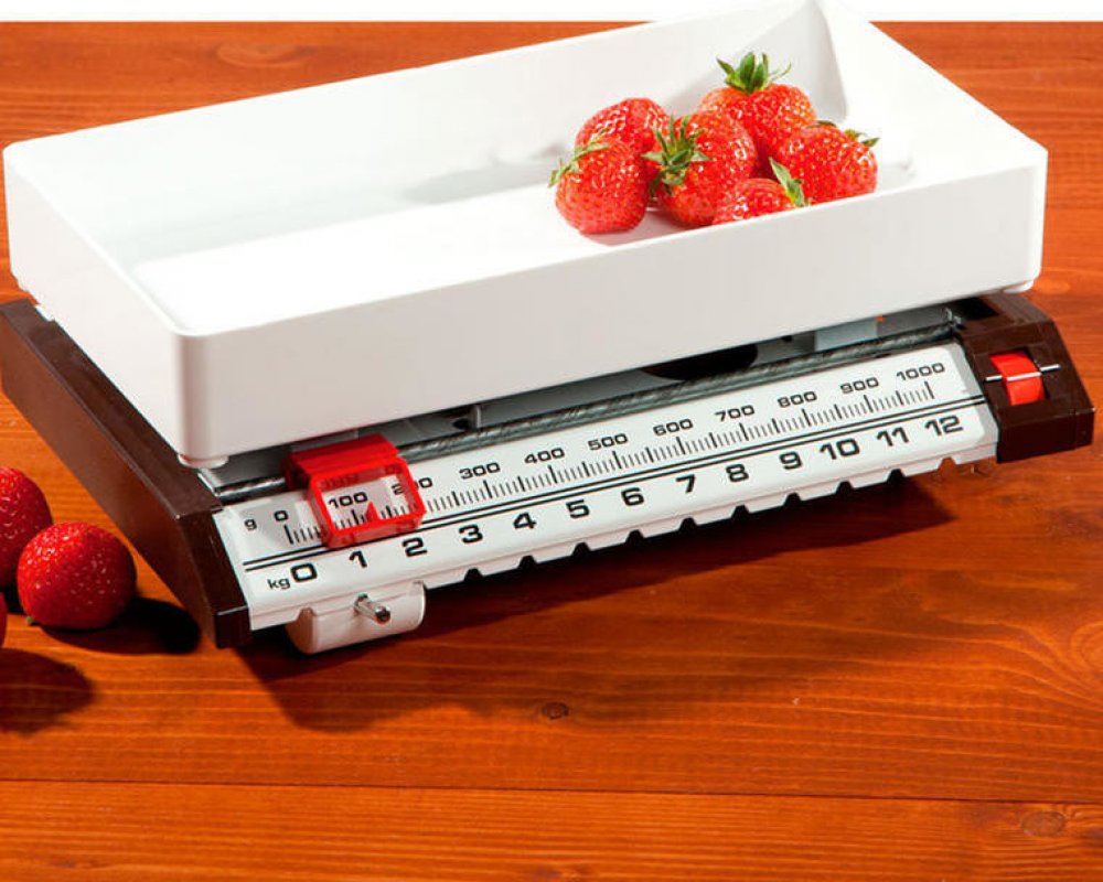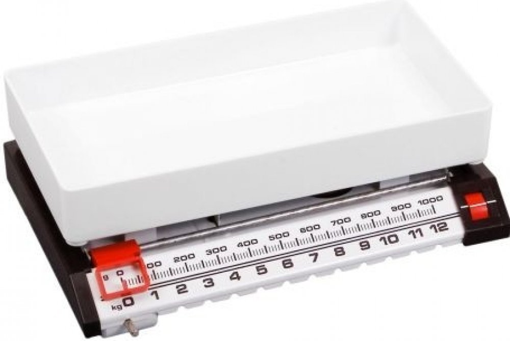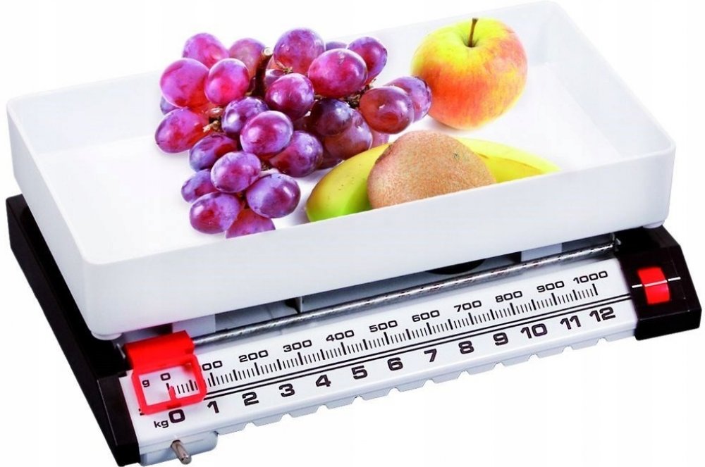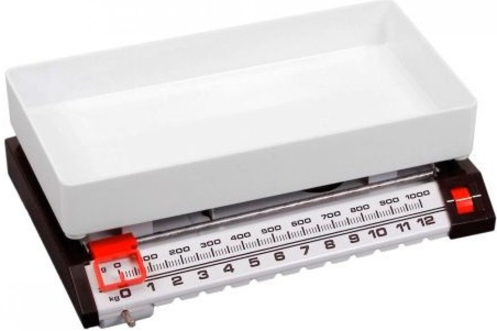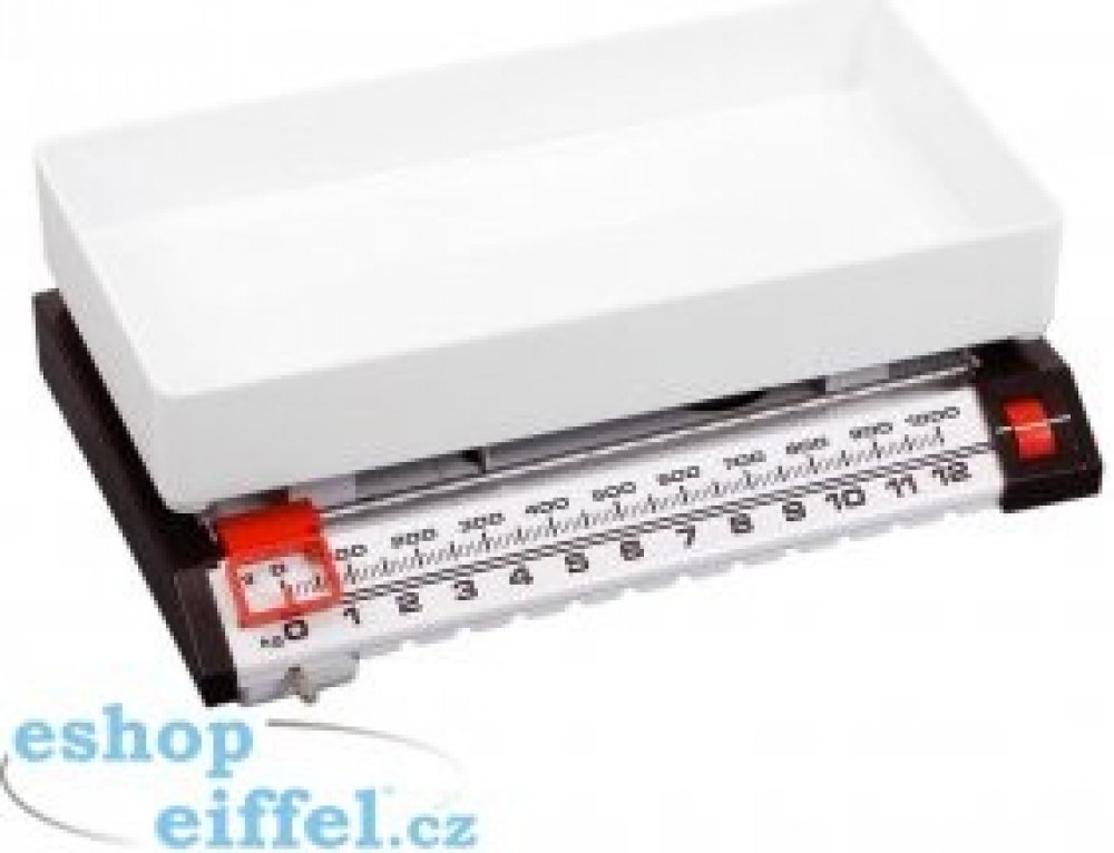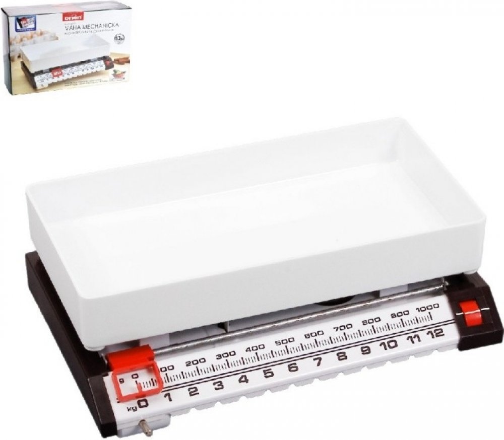 Mechanická kuchyňská váha s plastovou odnímatelnou miskou. Při vážení větších objemů můžete misku nahradit jakoukoli větší nádobou. V návodu je také popsán návod na možnost připevnění podložky na využití váhy k vážení malých dětí (podložka není součástí výrobku).