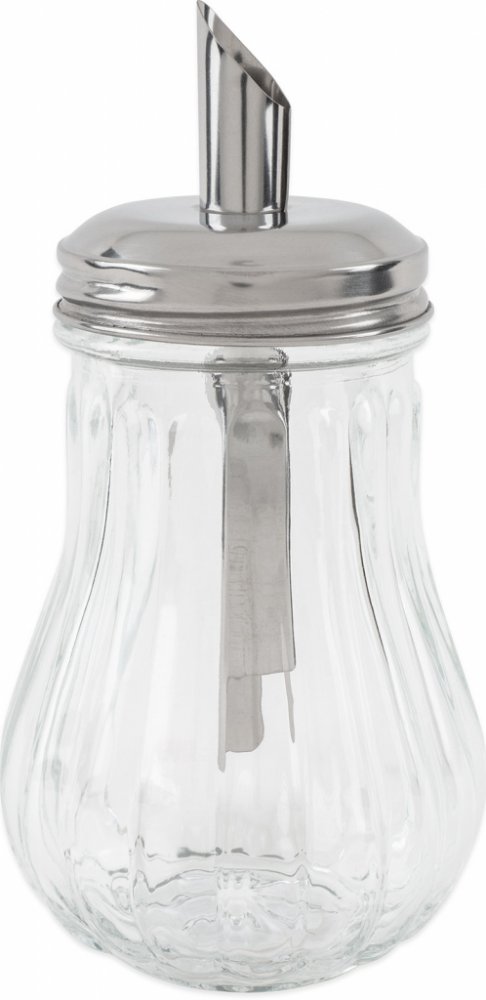 Cukřenka s dávkovačem. Materiál: sklo. Rozměry: pr. 7 cm, v. 13,5 cm.