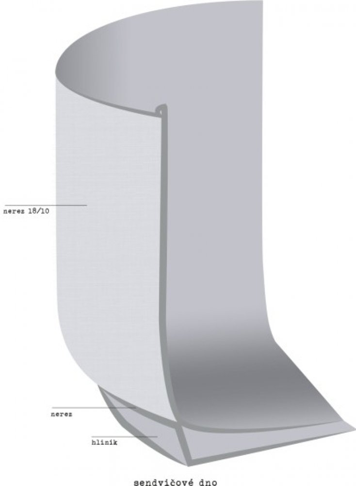 Sendvičové dno s termoakumulačními vlastnostmi zaručuje rychlé a ekonomické vaření s výraznou úsporou energie.