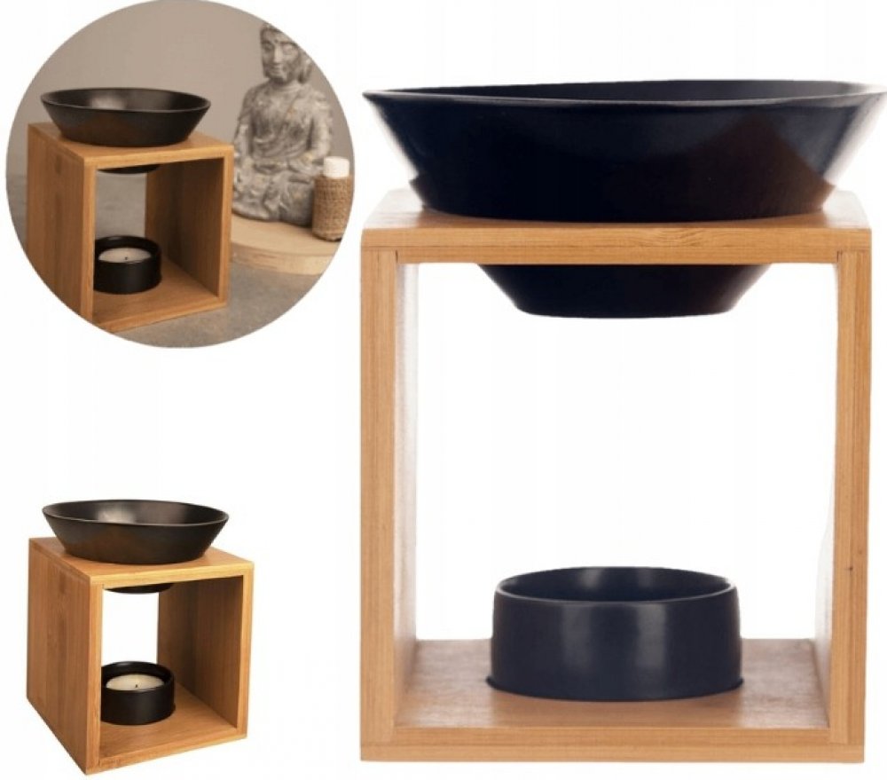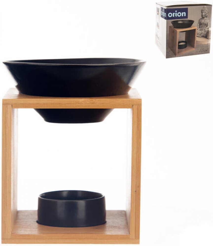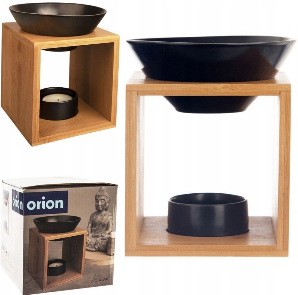Provoňte svůj interiér přírodními vůněmi s aromalampou od značky Orion. Sestává ze dvou černých porcelánových misek - na čajovou svíčku a aromavosk či esenciální olej - a bambusového stojanu.