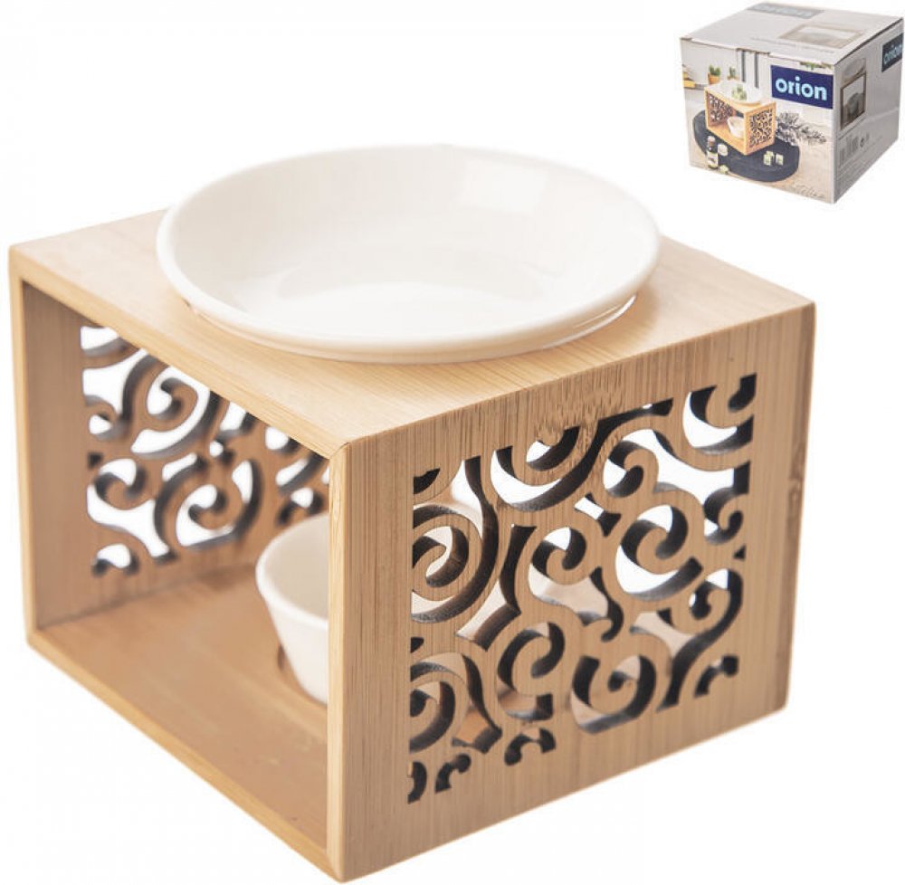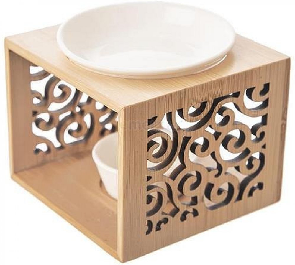 Aromalampa s bambusovým stojanem a porcelánovými miskami provoní domácnost voskem nebo aroma olejem