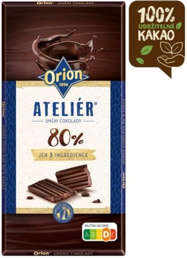 Cena se může v jednotlivých regionech lišit. -- Již od roku 1896 pro vás mistrně vyrábíme čokoládu ORION s respektem k našim kořenům a tradicím. Vychutnejte si nyní skutečný požitek z hořké čokolády ORION ATELIÉR s 80 % kakaa vyrobené jen ze 3 ingrediencí. O VÝROBCI Českým zákazníkům nabízí Nestlé své produkty už od roku 1918. V Česku a na Slovensku má tato společnost také své výrobní závody. Nest...