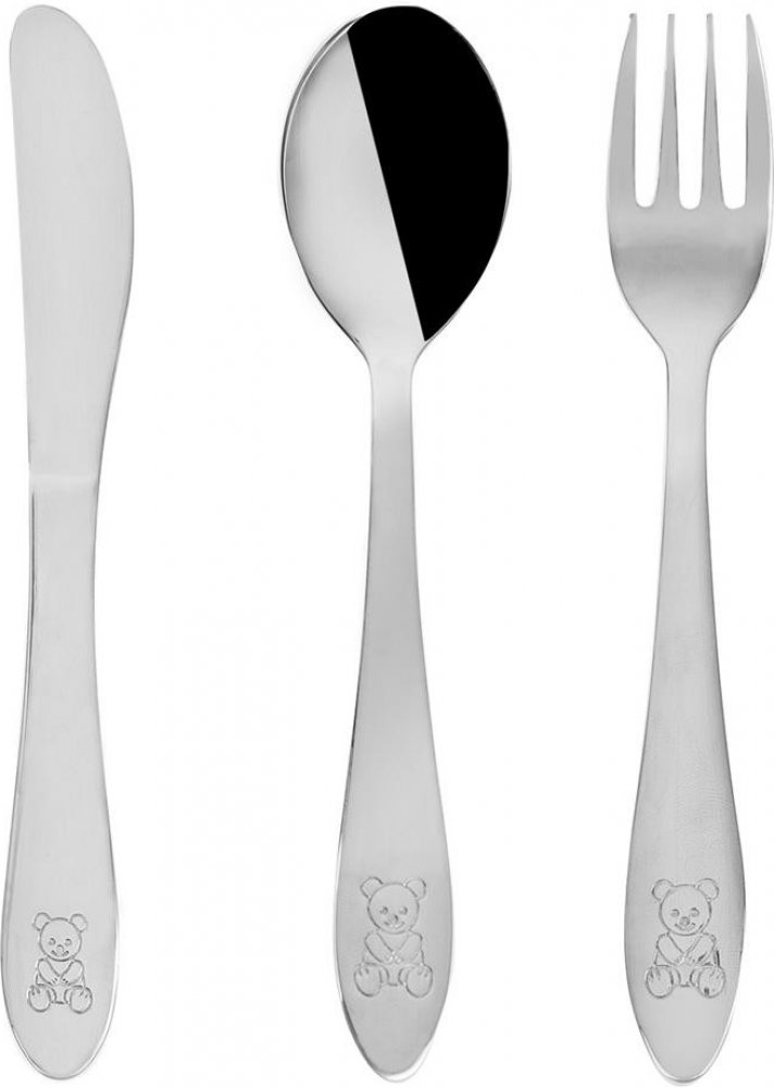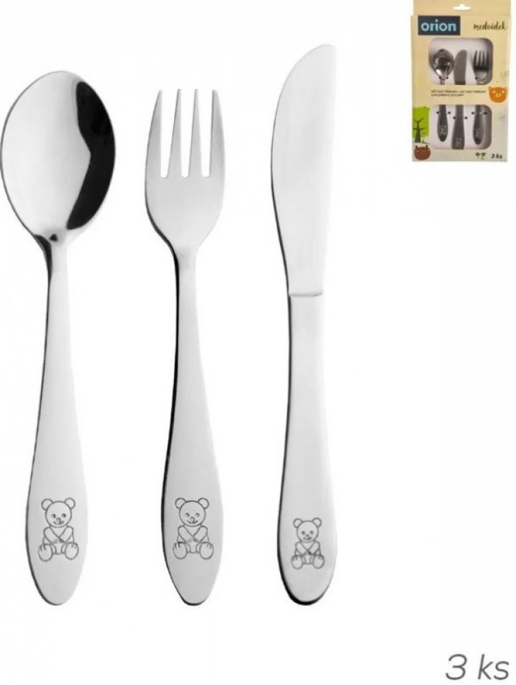Příbory s rytým motivem medvídka slouží pro nácvik správného stolování. Svou velikostí a váhou jsou uzpůsobeny malým dětským ručkám.