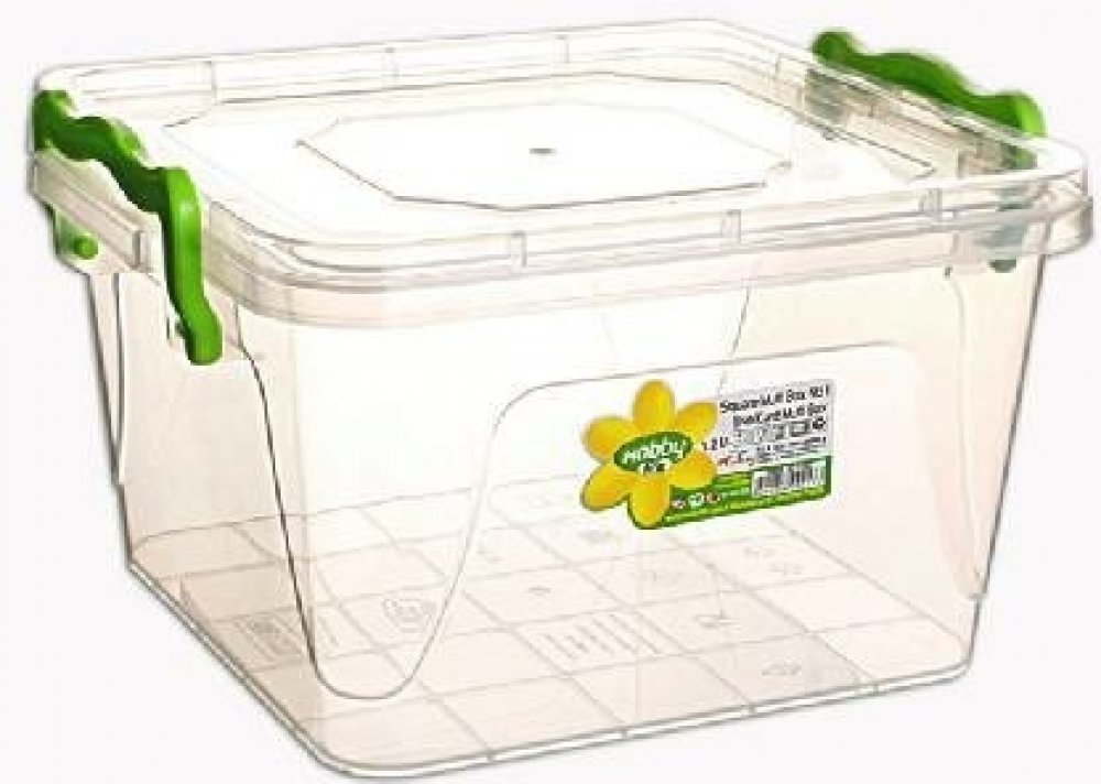 Box obdélníkový transparentní s víčkem na dva pevné klipy. Stohovatelný. Materiál: plast. Rozměry: objem 1,2 l, 28x12x6 cm. Vhodný do myčky, chladničky, do MVT – bez víčka. Bez BPA. Snáší teploty -10 °C až +95 °C.