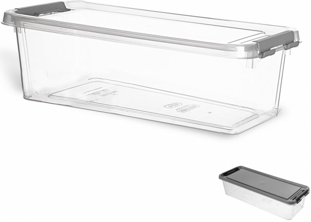 Plastový box LONG se hodí například ke skladování špaget, sáčků s kořením nebo nejrůznějších přísad na pečení. Má objem 3,5 l. Jeho pevné uzavření zajišťuje víko na dva klipy, které zabrání navlhnutí potravin a ochrání je před nechtěným hmyzem. Navíc je transparentní, díky čemuž ihned poznáte obsah nádoby. Boxy jsou stohovatelné, což ušetření místo v poličkách nebo ve spíži. Lze jej mýt v myčce, s...