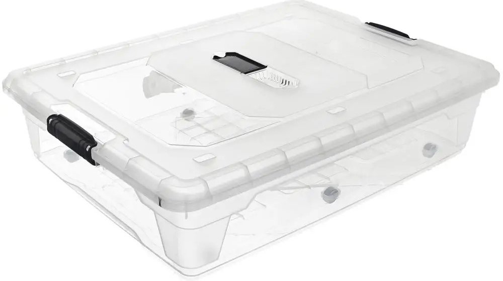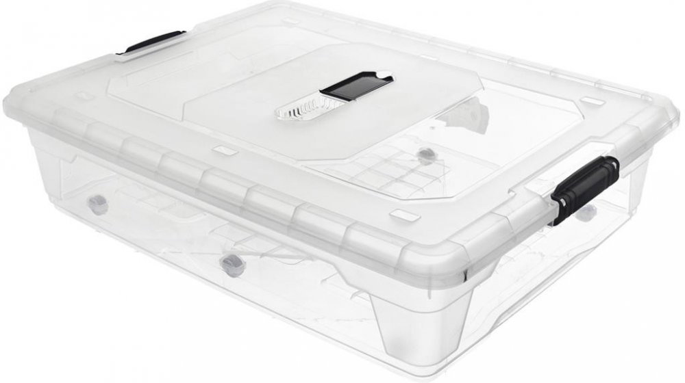 Box úložný nízký s kolečky je vhodný pro úklid lůžkovin, hraček, oblečení a čehokoli kdekoli v domácnosti. Díky jeho mobilitě jej lehce přesunete, využijete volný prostor. Klipy na pevné uzavření. Ve víčku uzavíratelný odvětrávací ventil.