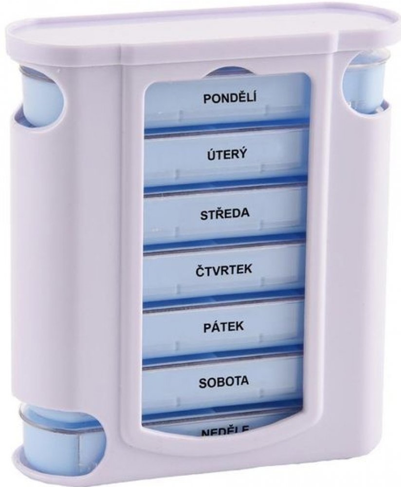 Box na léky s přihrádkami na 7 dní.
