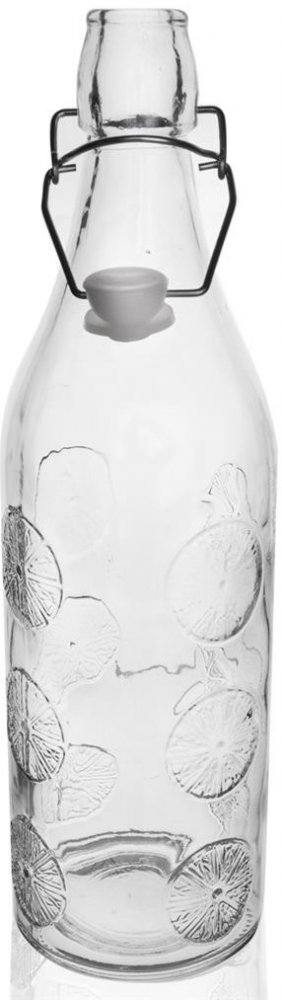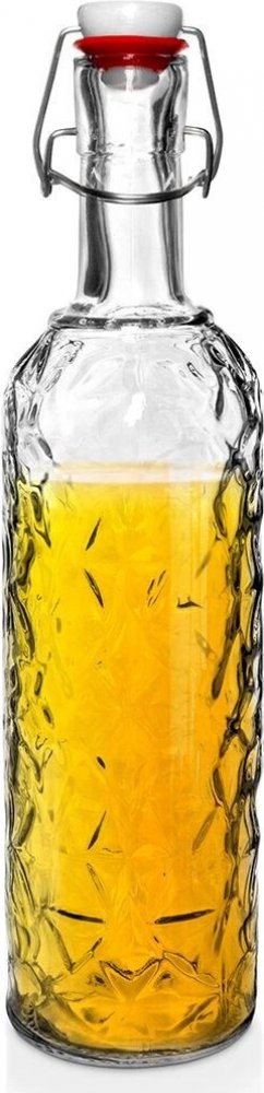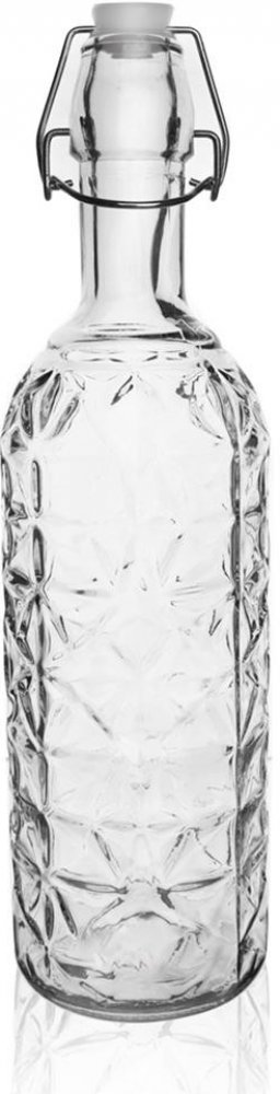 Podrobnosti o produktu OR126497 Skleněná láhev ELA o objemu 1,1 l s plastickým dekorem a pákovým uzávěrem.