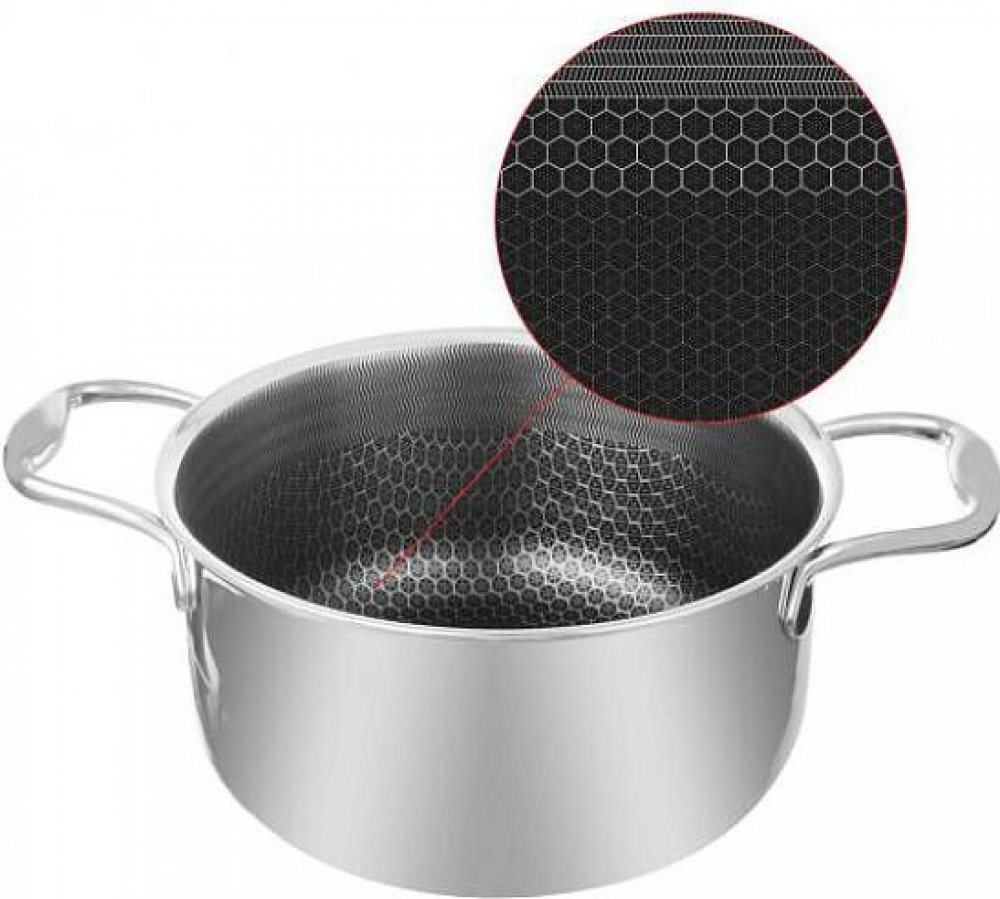 Unikátní hrnec z řady nádobí COOKCELL kombinuje nepřilnavý povrch se specifickou strukturou připomínající včelí plástve, a kvalitní nerezovou ocel.