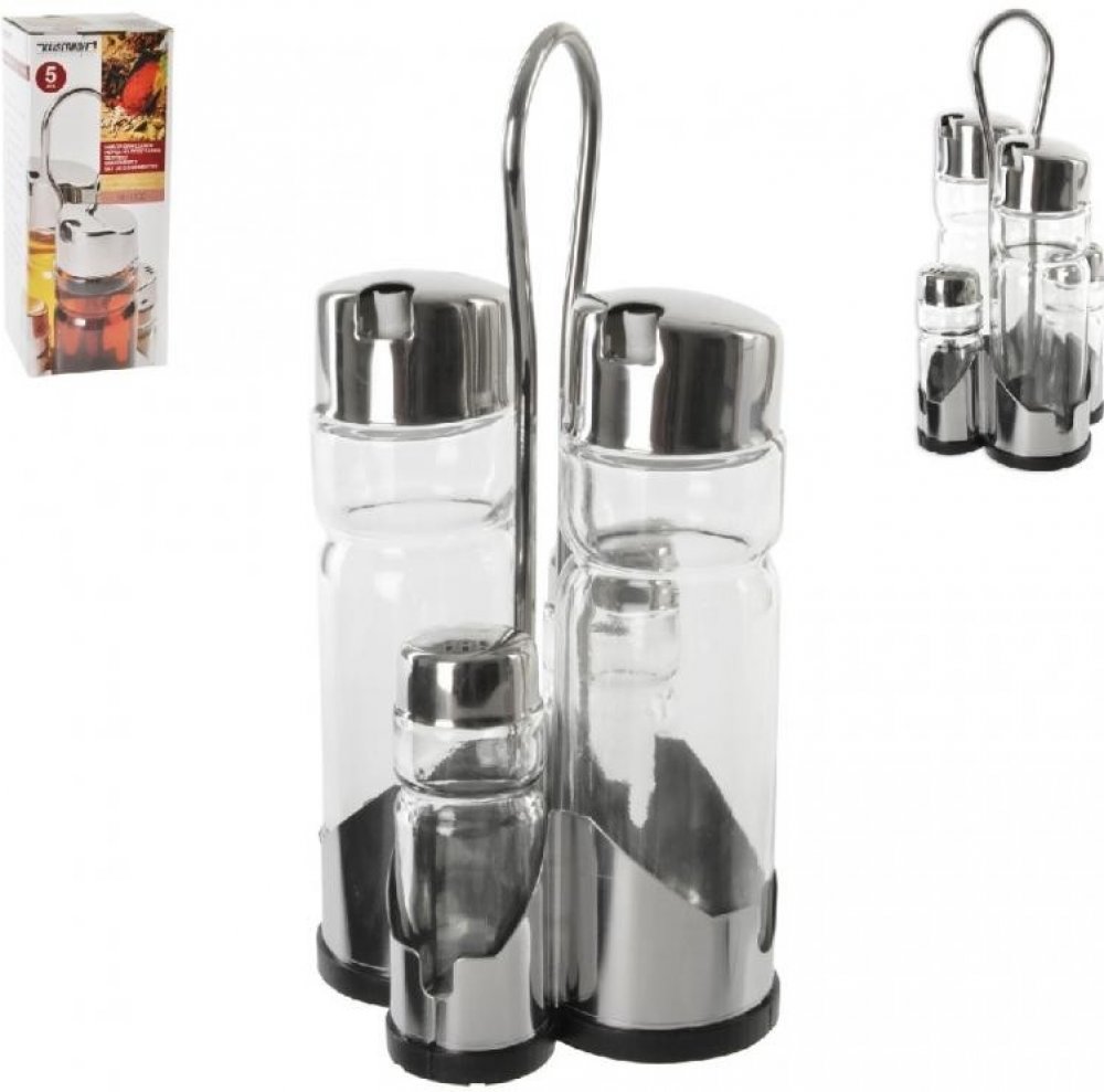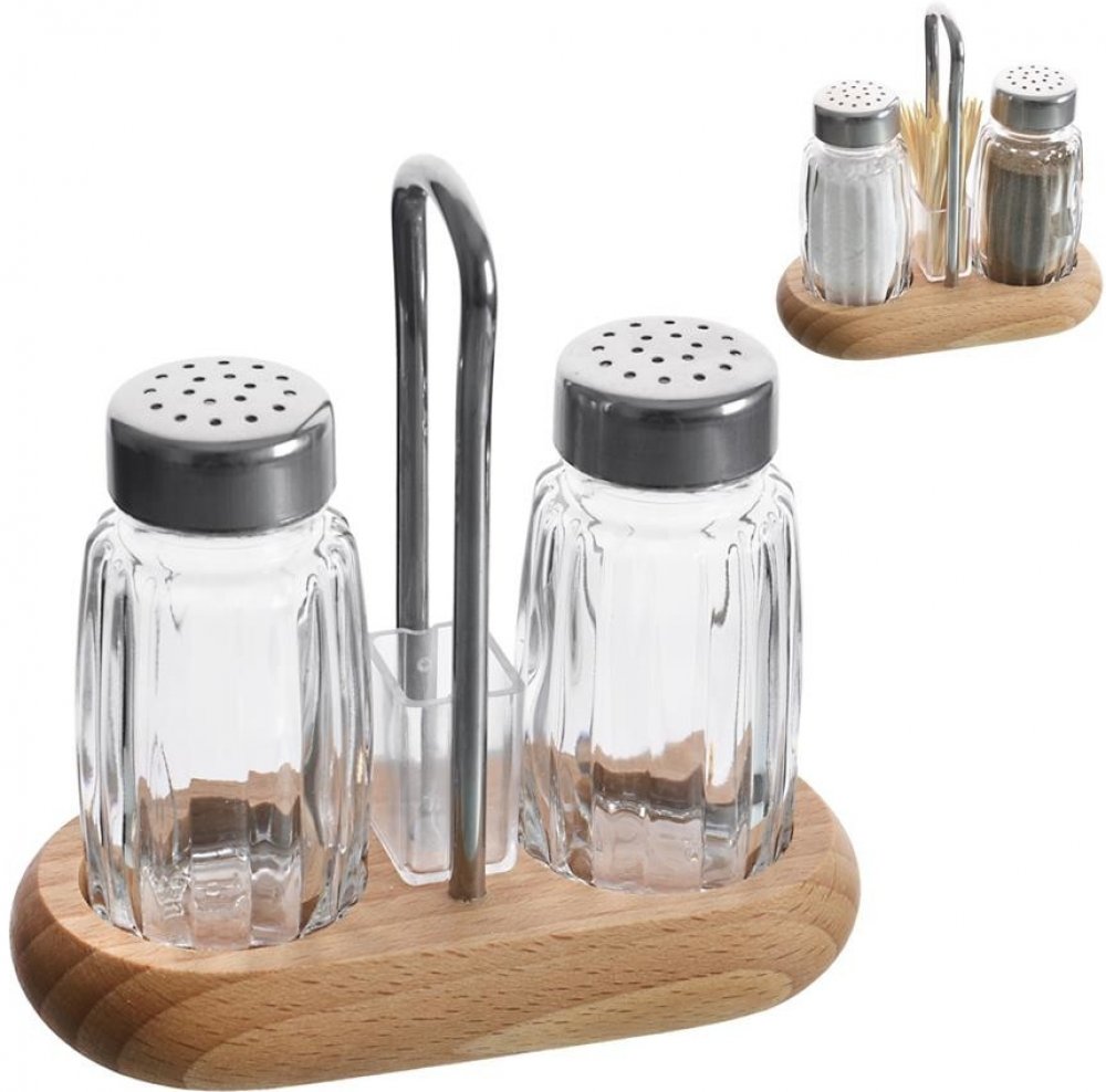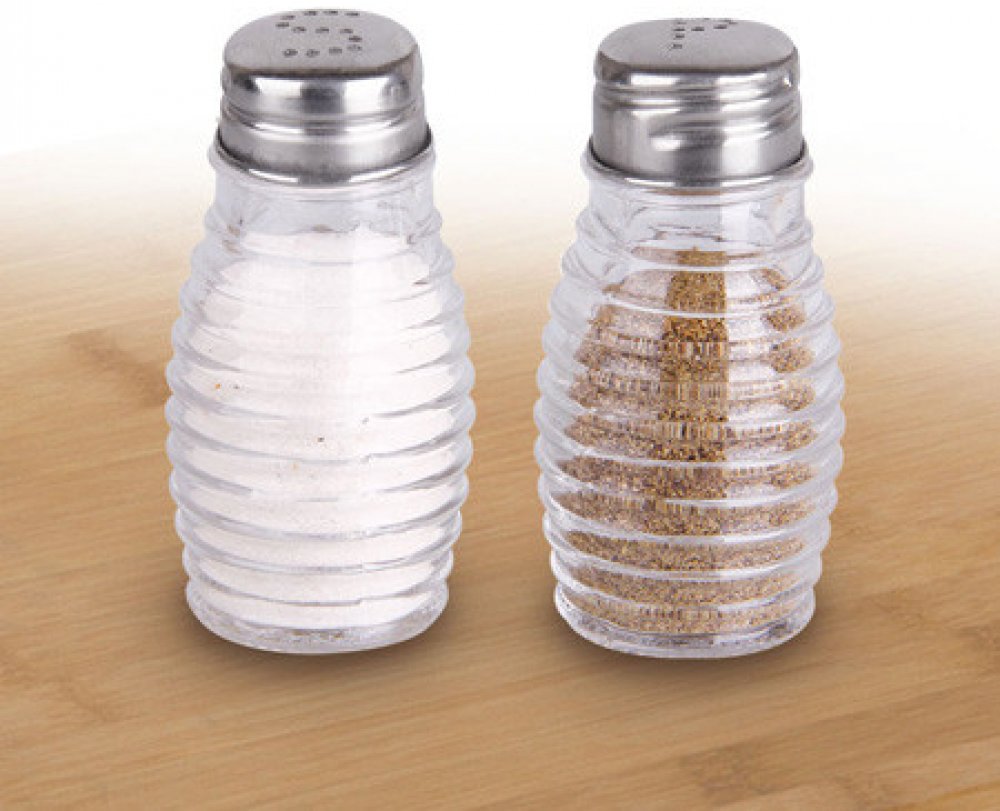 Praktické duo, díky kterému budete mít solničku a pepřenku neustále při ruce. Skleněné nádoby jsou zdobené výrazným vroubkováním.
