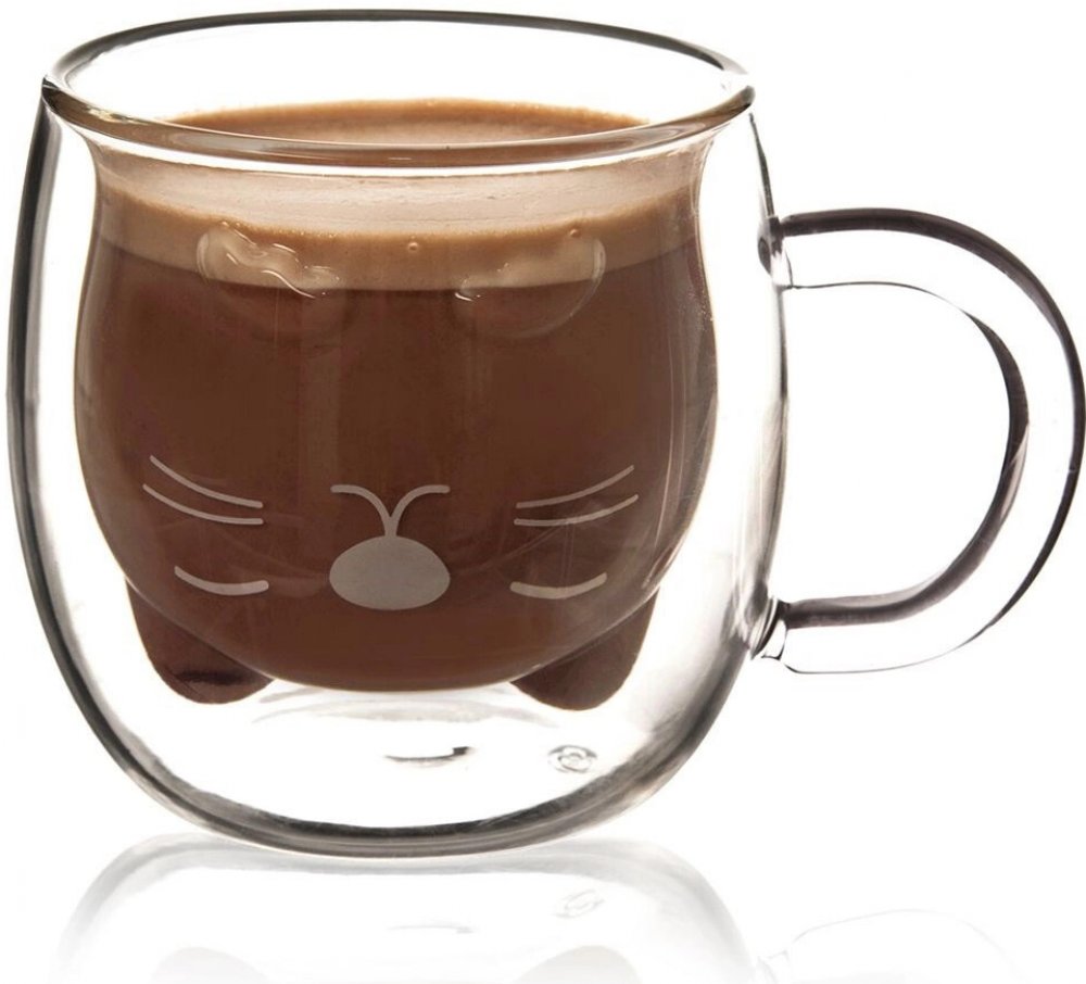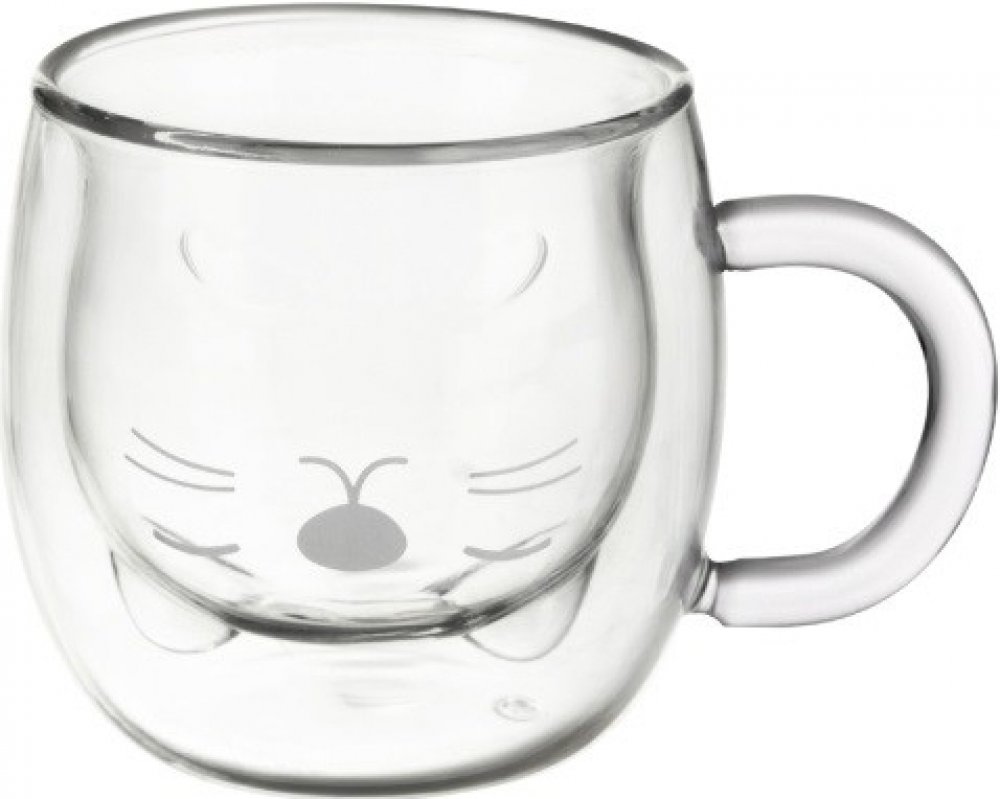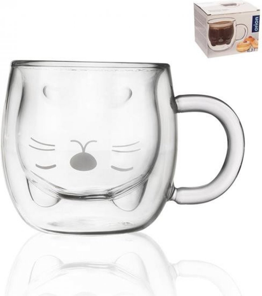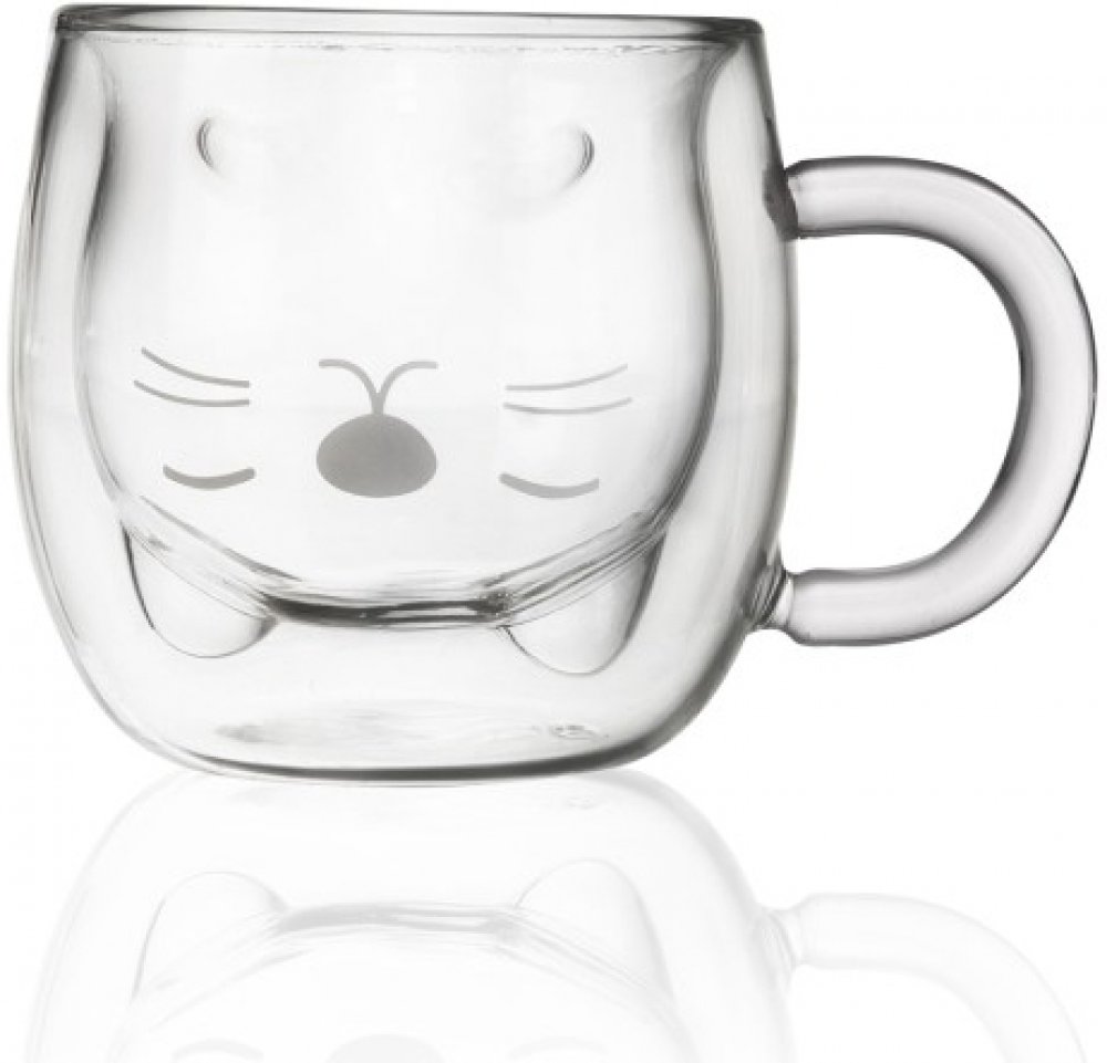 Dvoustěnný hrneček z borosilikátového skla dokáže po delší dobu udržet ideální teplotu oblíbeného nápoje. Díky vnitřní stěně, která tvoří tvar kočičí hlavy, bude horká čokoláda, džus nebo vychlazená limonáda vypadat zajímavě. Je doplněn o decentní potisk čumáčku s fousky, oblíbí si ho hlavně malí labužníci. Ranní teplý čaj, káva nebo kakao jen tak nevychladne a osvěžující nápoj v letním horku ihned nezteplá. Použití hrnečku je možné od -10 °C do +210 °C. Stačí umýt běžným způsobem, tekoucí vodou se saponátem.