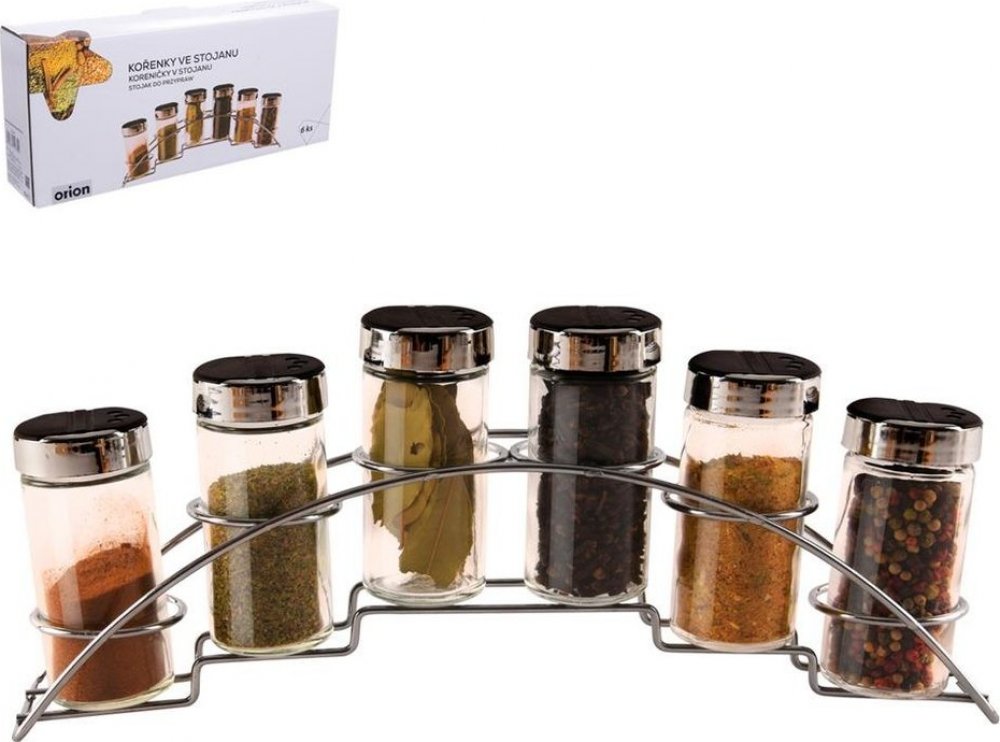 Kořenka sklo/UH 6 ks+stojan kov od ORION domácí potřeby nejlevněji na Dometa.cz. Praktický stojan na koření ORION s 6 skleněnými kořenkami a plastovými víčky, ideální pro vaši kuchyni. Drátěný stojan se 6ti kořenkami od značky ORION je skvělým pomocníkem pro každého, kdo miluje mít své oblíbené koření na dosah ruky. Tento praktický stojan můžete umístit kdekoliv na kuchyňskou linku, kde zrovna pot...