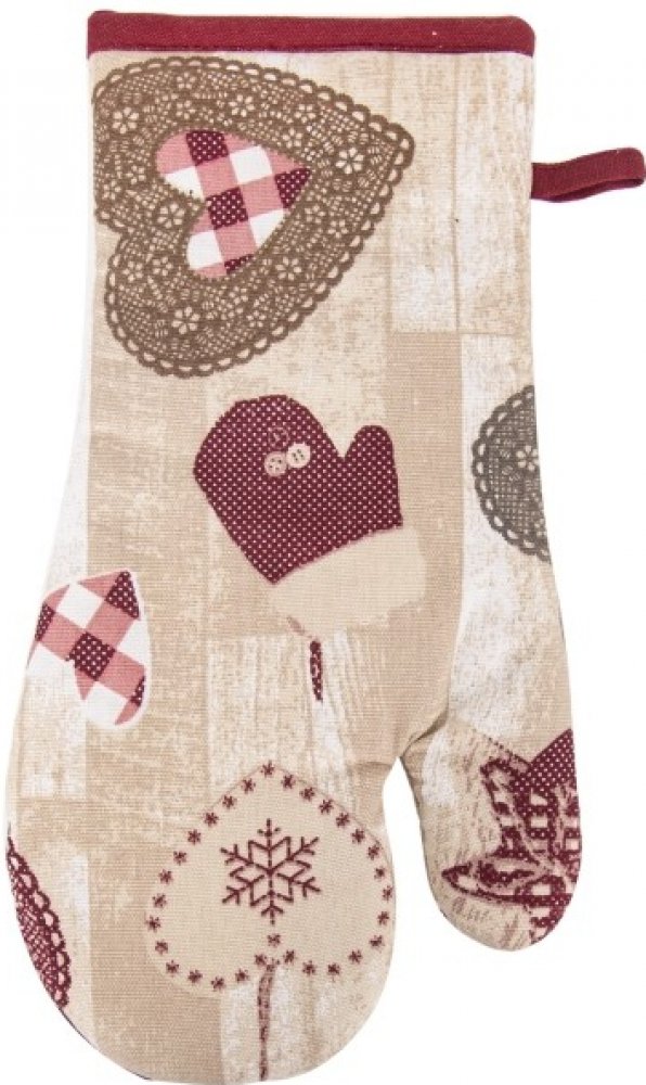 Tato bavlněná rukavice se vzorem srdce v originálním retro stylu vypadá skvěle nejen na chatě a chalupě, ale i v moderní kuchyni. Ladící červené poutko umožňuje její zavěšení, můžete ale využít i vlože...