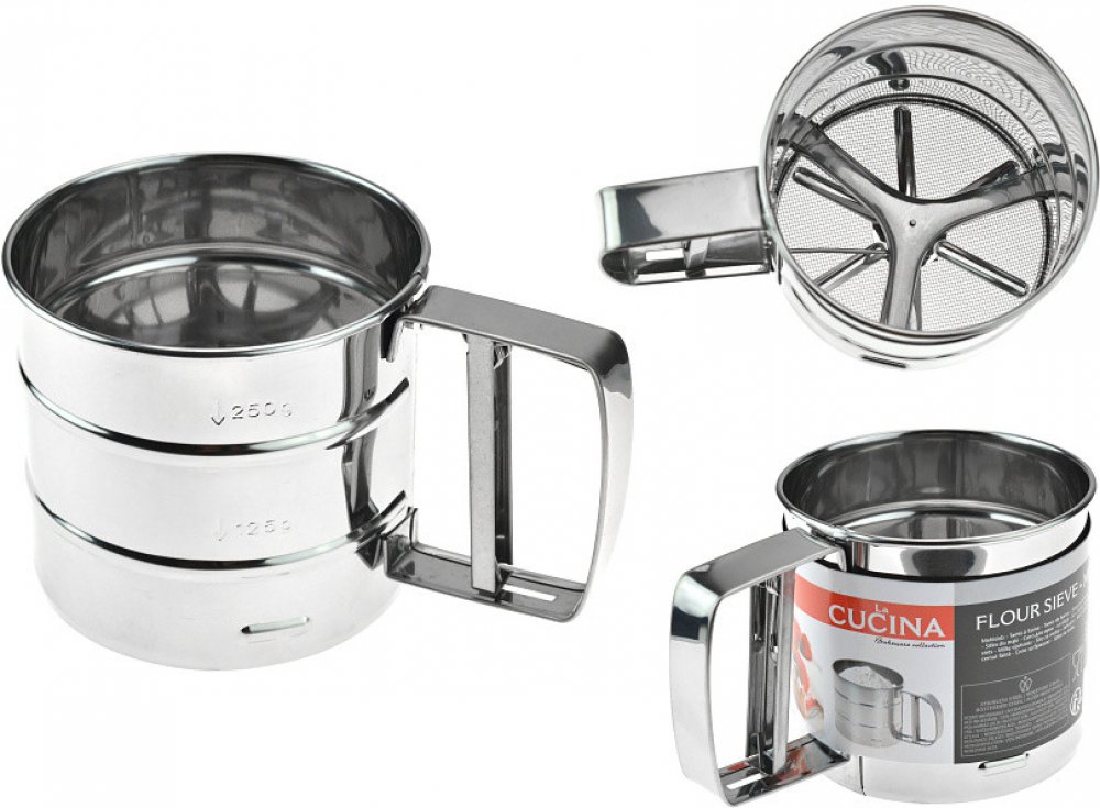 Každá správná hospodyňka moc dobře ví, že při pečení slaďoučkých a nadýchaných dezertů je potřeba pořádně prosít mouku, aby byl výsledek jedním slovem dokonalý. Mějte proto po ruce nerezové sítko a buďte připraveni!. Materiál: nerezová ocel - rozměry: průměr 10 cm, výška 9 cm - objem: 2 šálky