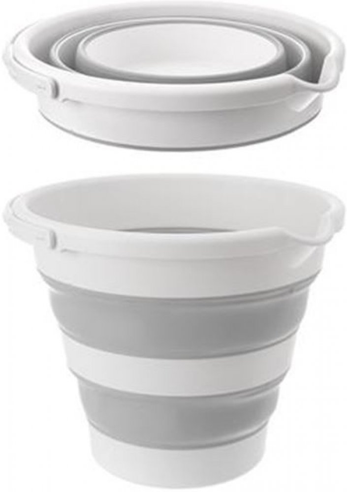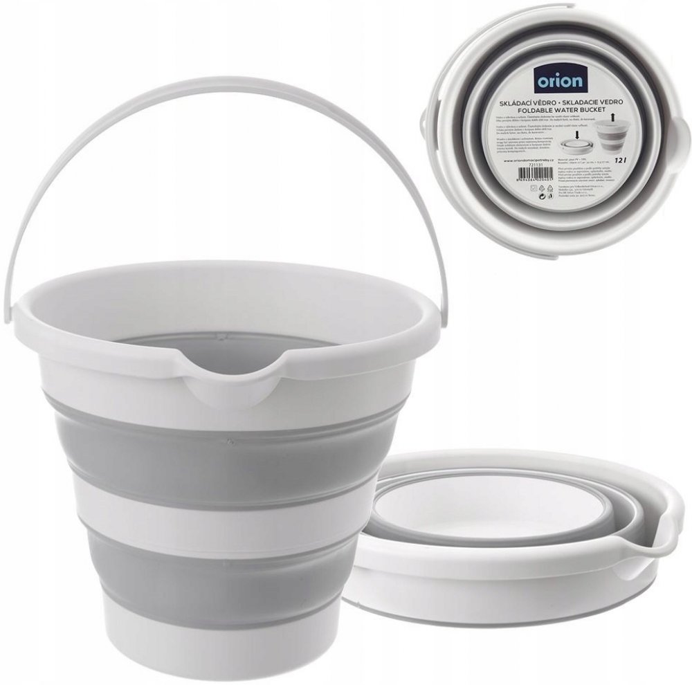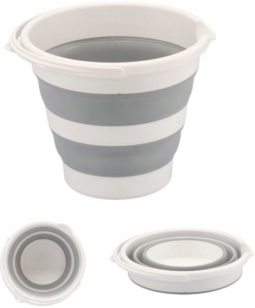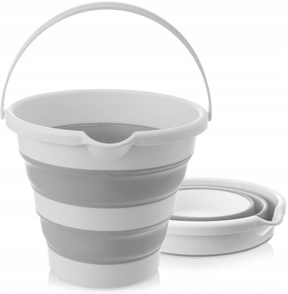 Vědro s výlevkou s uchem v netradičním provedení-skládací-nezabere téměř žádné místo, když ho nepotřebujete. Snadno a rychle ho složíte, složené můžete pověsit. Přitom je plně funkční. Dokonce ho můžete částečným rozložením využít jako různě velké nádoby. Díky pevným dílům v korpusu dobře drží tvar. Skvělé do malých bytů, na chatu, do karavanů...