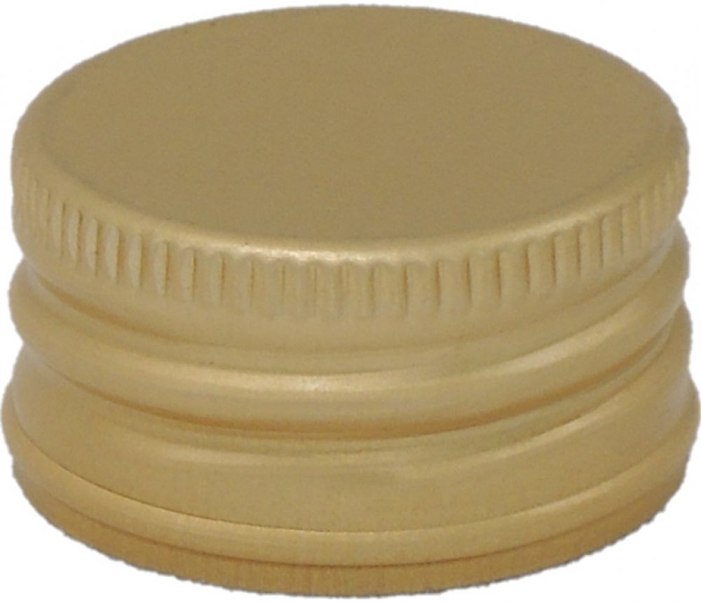 Hliníkový šroubovací uzávěr na lahve s hrdlem o průměru 28 mm, s plastovou těsnící vložkou, bez pojistného kroužku.