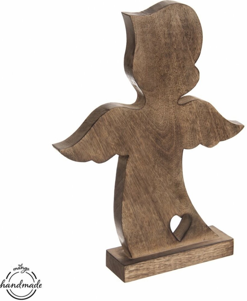 Anděl s roztaženými křídly a otvoremve tvaru srdce ve spodní části je vyroben z mangového dřeva. Bude stylovou dekorací i krásným dárkem nejen o svátcích, vašim blízkým nebo partnerce