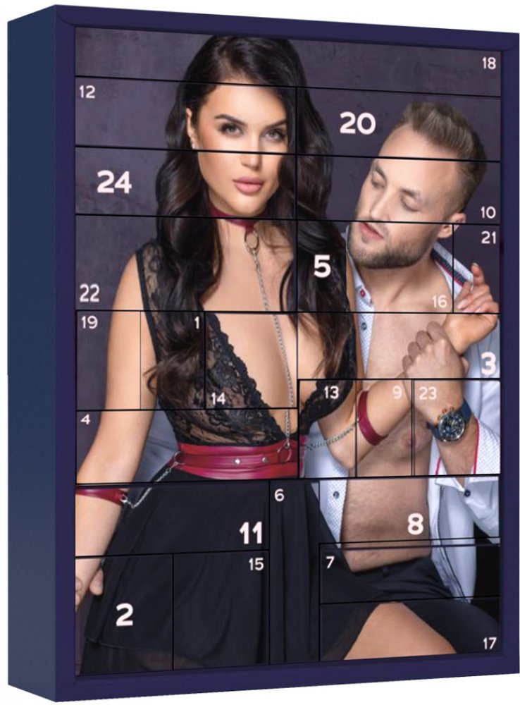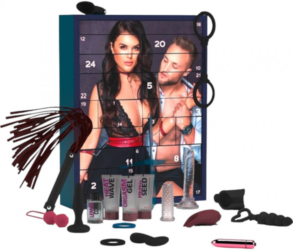Nově přepracovaný adventní kalendář se 24 unikátními dárkovými krabičkami. Smyslný, oboustranný design (fotka/ilustrace). Prémiový obsah od nejlepších značek. Více než 400 eur maloobchodní hodnota. Erotický dárek pro páry i single. Adventní kalendář: Sdílejte lásku a radost pod jmelím! Tento nový, erotický prémiový adventní kalendář nabízí nezapomenutelné odpočítávání svátků s 24 úžasnými překvapeními! Smyslný, oboustranný design (fotka/ilustrace) s malými dárkovými krabičkami je perfektní vánoční dekorace na stůl. Inspiřuje každý den k vzrušujícím chvílím a vášnivým milostným dobrodružstvím až do Vánoc. Adventní kalendář je nový a s láskou sestaven: Obsahuje vysoce kvalitní milostné hračky od We-Vibe a Magic Shiver, různé vzrušující erotické gely od Just Play a prémiové lubrikanty od Just Glide. Kromě toho, lákavé sexuální hračky a úžasné metody pro získání potěšení sladké této vánoční sezóně. Těchto 24 překvapení, jejichž celková hodnota přesahuje 400 eur, je neodolatelnou nabídkou pro dospělé – a skvělým dárkovým nápadem pro páry i single. Veselé Vánoce – šiřte lásku a radost pod jmelím! Balení obsahuje: 1 x hračka We-Vibe, 12 x milostná hračka, 4 x příslušenství, 5 x kosmetický výrobek, 2 x Soft Bondage. Celkem: 24ks.