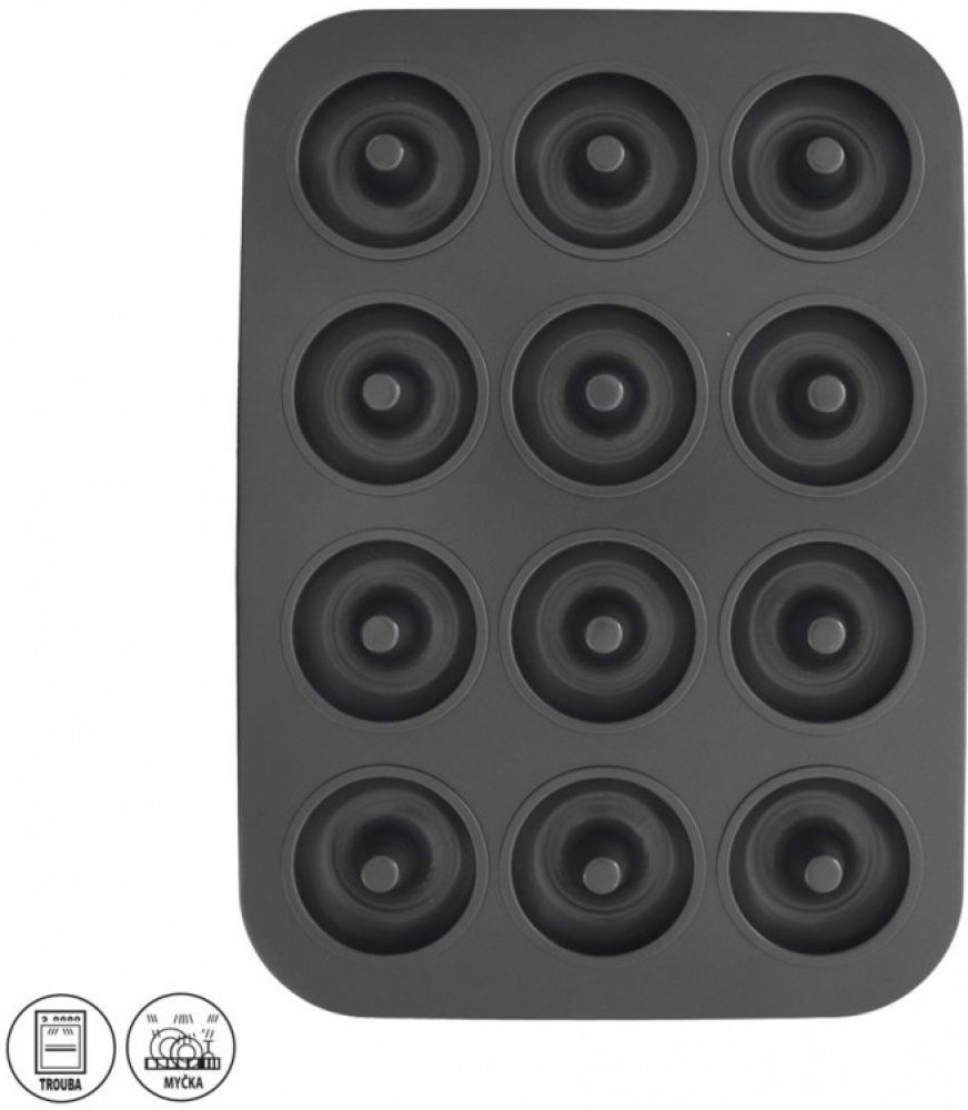 Plech na koblížky/donuty s kvalitním nepřilnavým povrchem, který brání připečení, a to i při použití minimálního množství tuku. Upečené dobroty snadno z plechu vyjmete. Doporučujeme formu vymazat nebo vystříkat sprejem na pečení. Použijte kuchyňskou chňapku. Vhodná do plynové, elektrické i horkovzdušné trouby. Lze mýt v myčce na nádobí. Rozměry: 40x28,5x2 cm, pr. donutu 7 cm.