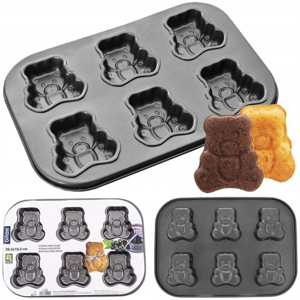 Forma vám umožní upéct šest cupcaků nebo sušenek ve tvaru medvídků. Hodí se pro přípravu oblíbených pečených medvídků se sladkou náplní. Užitečná v každé domácnosti, snadno se čistí a pohodlně se používá. Těsto se nelepí a snadno se vytahuje.
