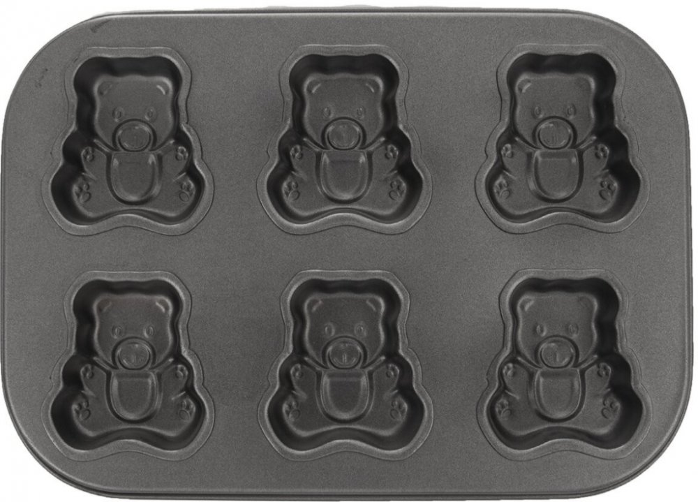 Forma na pečení Vám pomůže vytvořit piškotové medvídky, kterými potěšíte především děti. Můžete je naplnit čokoládou, marmeládou, ozdobit polevou. Ve formě připravíte 6 ks medvídků. Forma je vhodná do plynové, elektrické i horkovzdušné trouby. Doporučujeme použití kuchyňské chňapky. Před použitím je dobré formu vymazat nebo vystříkat sprejem na pečení, aby byly zachovány detaily forem.