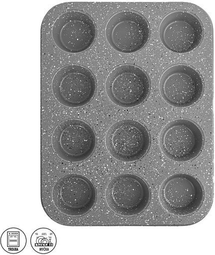 Formy na pečení Vám umožní upéci si krásné muffiny. Jsou opatřeny nepřilnavým povrchem, který brání připečení, a to i při použití minimálního množství tuku. Dobroty z formy snadno vyklopíte, upečené vypadají lákavě. Lze mýt v myčce na nádobí. Materiál:uhlíková ocel s kvalitním nepřilnavým povrchem Xynflon GRANDE, který je vysoce odolný a snadno se udržuje. Max. teplota pro pečení 230 °C. Rozměry: ...