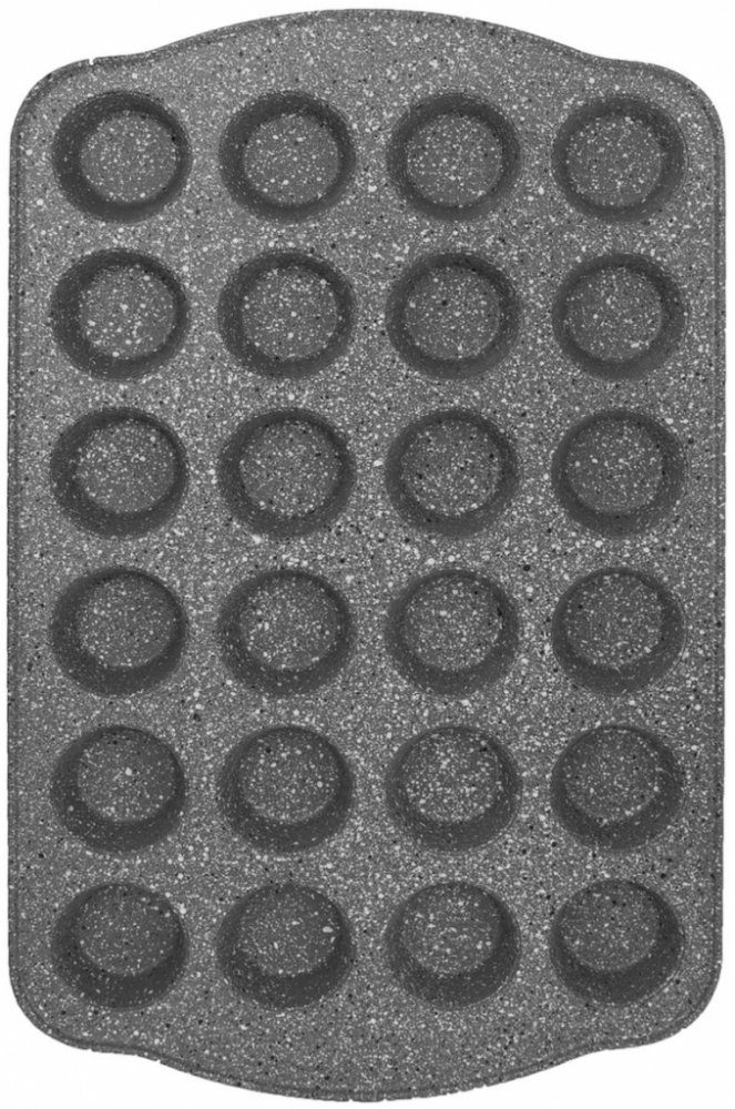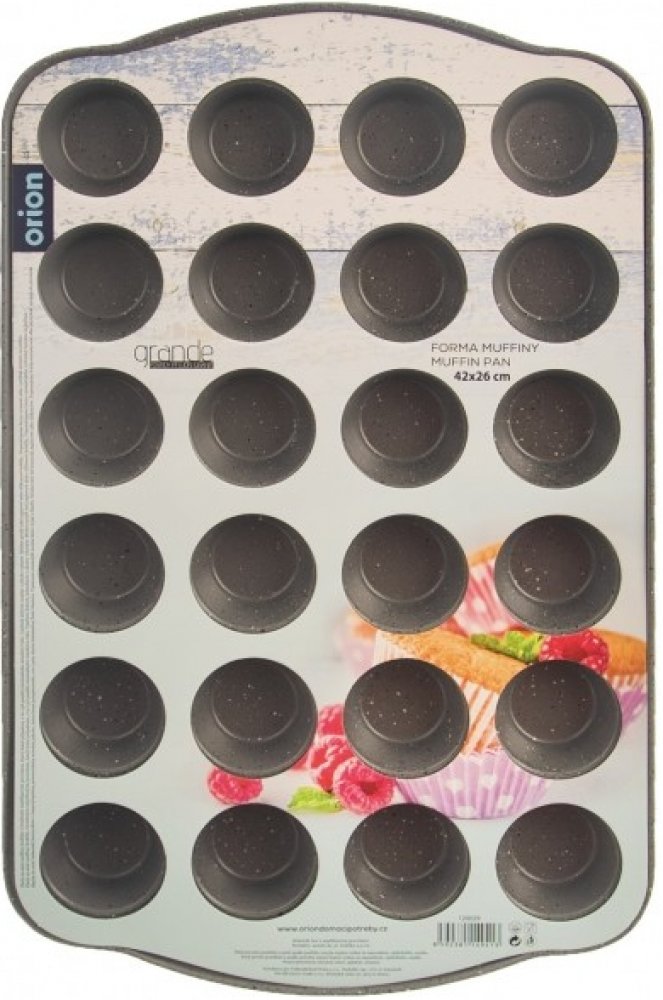Plech na mini muffiny/košíčky s kvalitním nepřilnavým povrchem, který brání připečení, a to i při použití minimálního množství tuku. Upečené dobroty snadno z plechu vyjmete. Můžete použít také papírové nebo silikonové košíčky. Materiál: uhlíková ocel s kvalitním nepřilnavým povrchem Xynflon GRANDE, který je vysoce odolný a snadno se udržuje. Max. teplota pro pečení 230 °C. Doporučujeme formu vymazat nebo vystříkat sprejem na pečení. Použijte kuchyňskou chňapku. Vhodná do plynové, elektrické i horkovzdušné trouby. Lze mýt v myčce na nádobí. Rozměry: 42x26x2,5 cm, pr. dna forem pro košíčky 3,5 cm.