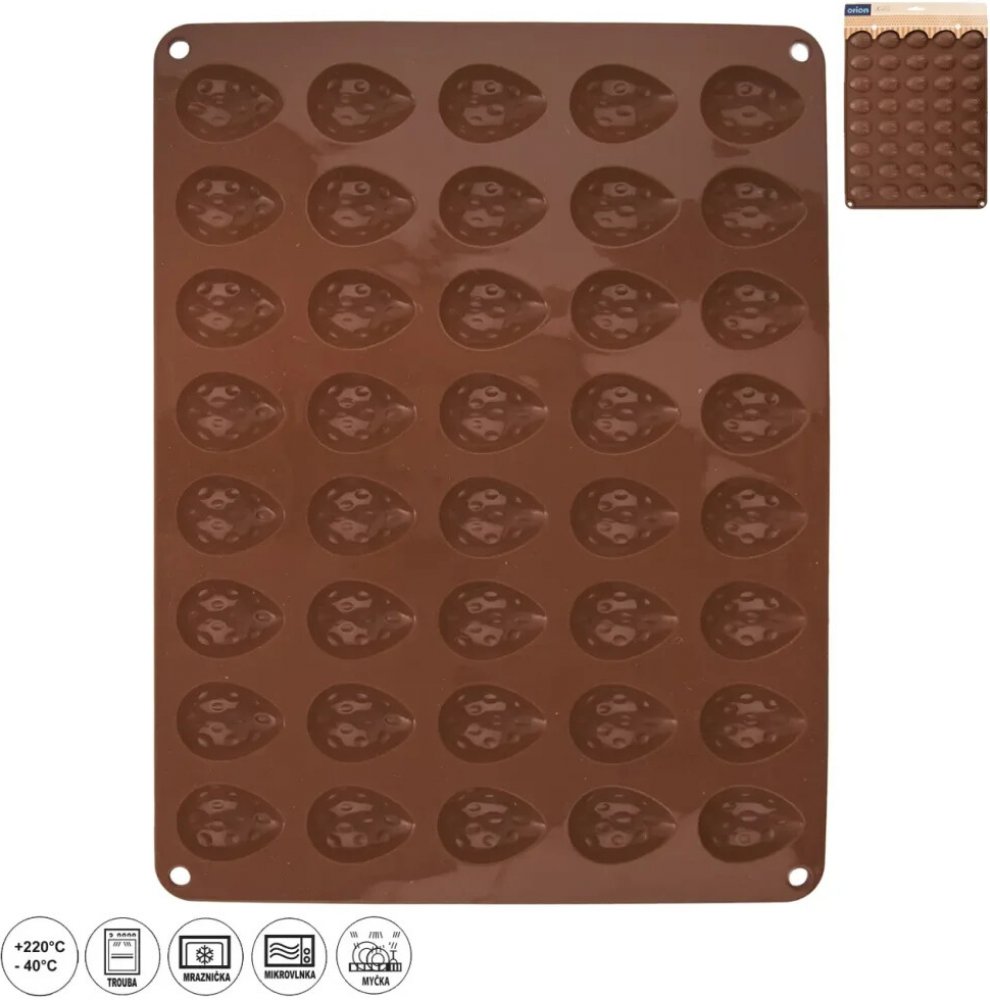 Díky kvalitní a praktické silikonové formě v hnědé barvě bude i vaše letošní pečení cukroví snadnější. Třeba 40 ořechů o velikosti 4,2x3 cm naráz. Formy jsou vyrobené z odolného, žáruvzdorného silikonu, určeného pro styk s potravinami. Lze je použít i na čokoládové pralinky, levandulové madlenky nebo marcipán.