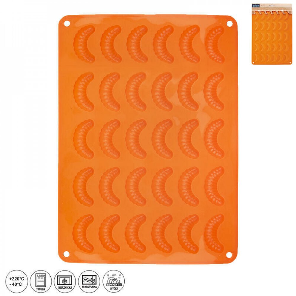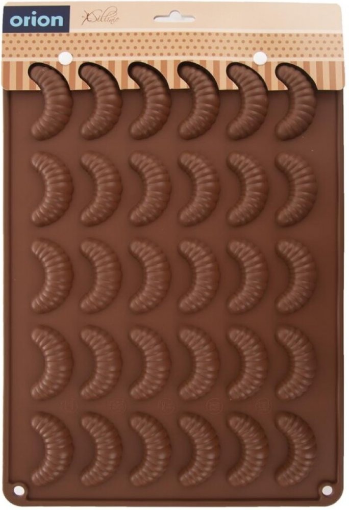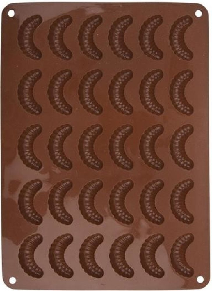 Díky kvalitní a praktické silikonové formě v hnědé barvě bude i vaše letošní pečení cukroví snadnější. Třeba 30 rohlíčků délky 5,5 cm naráz. Formy jsou vyrobené z odolného, žáruvzdorného silikonu, určeného pro styk s potravinami. Lze je použít i na čokoládové pralinky nebo želatinové bonbóny.
