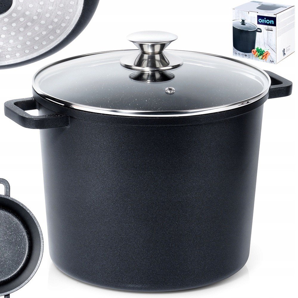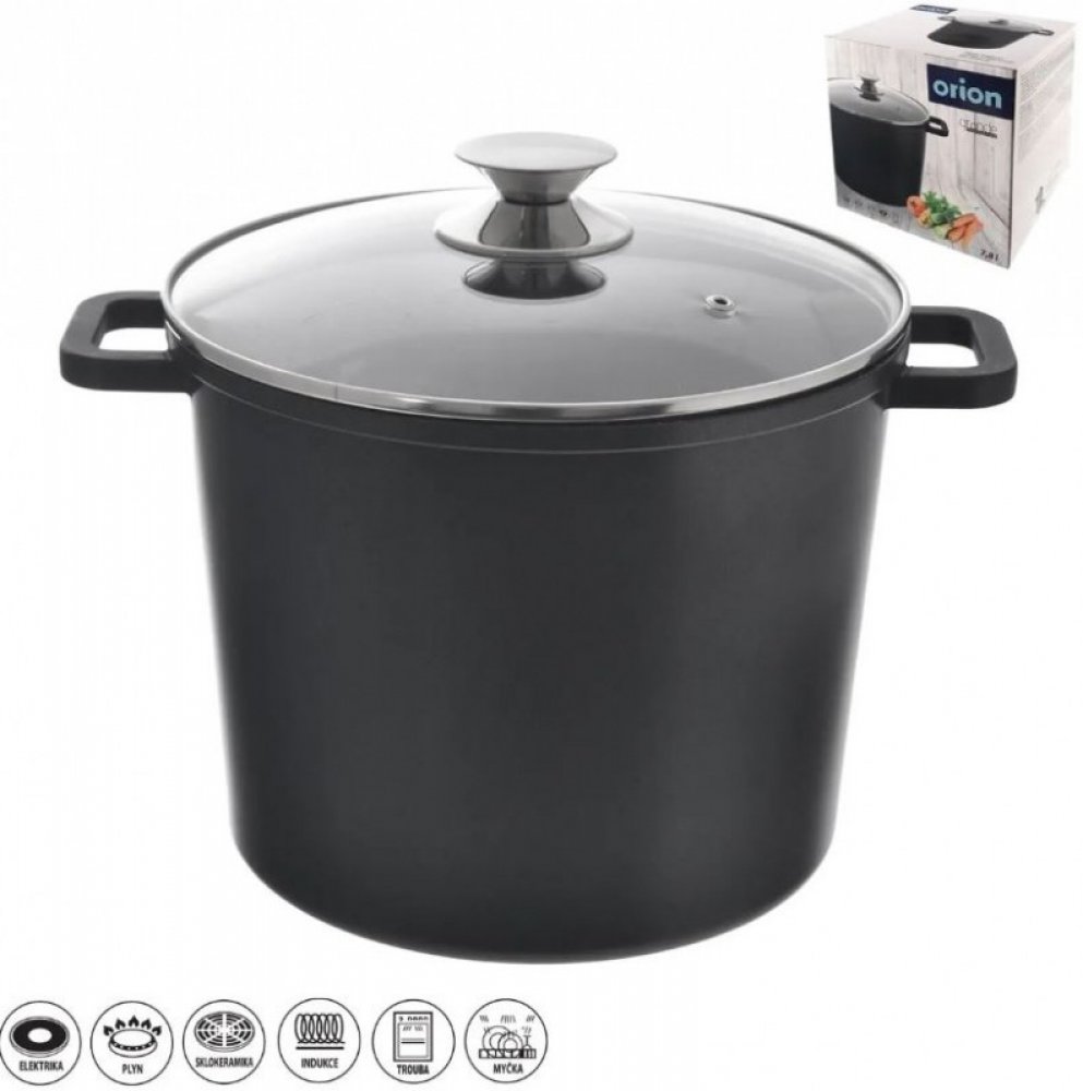 Masivní hrnec s poklicí s velmi kvalitním nepřilnavým povrchem PFLUON GRANIT. Můžete v něm vařit, smažit, dusit, opékat a zapékat s minimální potřebou tuku. Připravovaný pokrm se nepřipéká. Poklice s otvorem pro únik přebytečné páry. Vhodný na všechny typy spotřebičů včetně indukce a trouby. Doporučujeme použití kuchyňské chňapky. U plynových sporáků volte správnou velikost plamene, u elektrických, sklokeramických a indukčních vařičů je nutné zvolit odpovídající velikost ploténky. Připravovaný pokrm lze na sporáku připravit a pak jej vložit do trouby. Připravené jídlo můžete pohodlně skladovat v hrncích také v chladničce. Technické parametry:- Materiál: hliník s vynikajícím nepřilnavým povrchem PFLUON GRANIT a s profilovaným dnem, sklo, nerez- Rozměry: objem 7,8 l, pr. 24 cm, v. 20/25 cm- Při použití v troubě poklice max. do 200 °C- Lze mýt v myčce na nádobí. Lze skladovat v chladničce