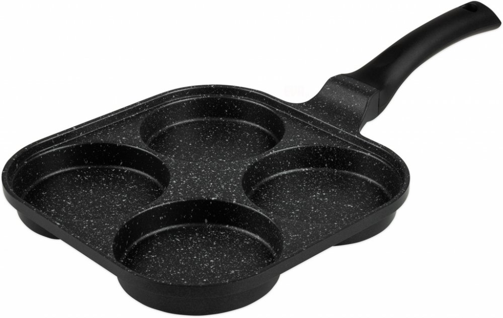 Pánev na lívance nebo volská oka s velmi kvalitním nepřilnavým povrchem PFLUON GRANI. Je určena pro přípravu sázených vajec, bramboráčků, lívanečků atd. s minimální potřebou tuku, čtyři oka, materiál: hliník s vynikajícím nepřilnavým povrchem a s profilovaným dnem, plastové držadlo, možnost zavěšení, průměr 22 cm, výška 2,7 cm, průměr jednoho oka je 10 cm, vhodná na všechny typy spotřebičů včetně ...