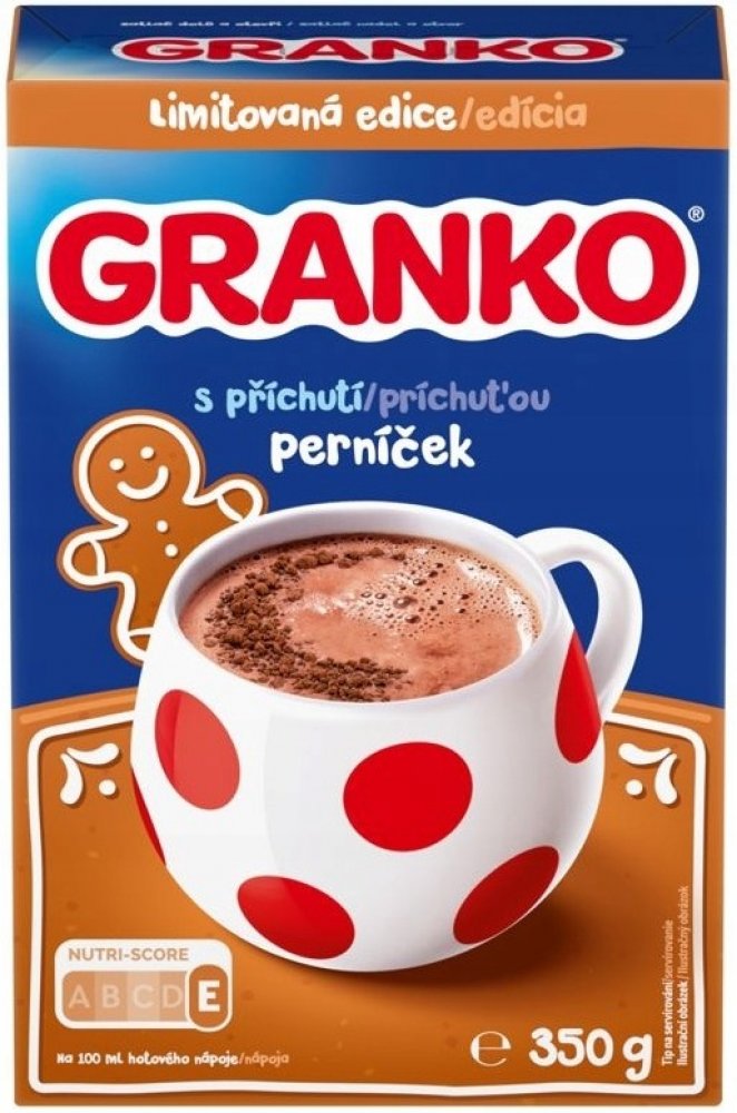 Složení: Cukr, kakaový prášek se sníženým obsahem tuku 30 %, emulgátor (sójový lecitin), uhličitan hořečnatý, jedlá sůl, vitamíny, směs koření, aroma.