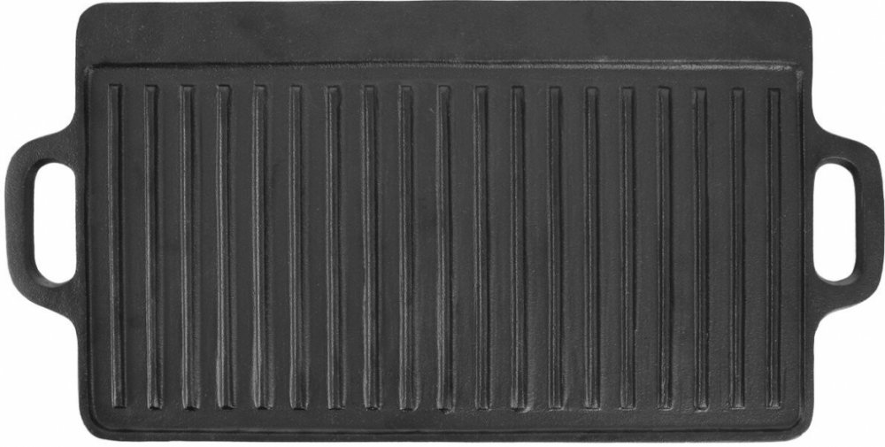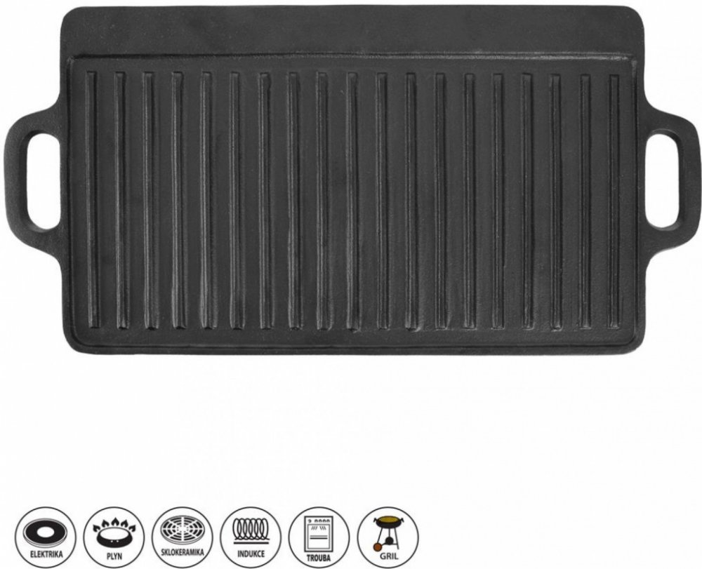 Orion Grilovací deska LITINAOboustranná deska na grilování s typickou žebrovanou strukturou na jedné straně a hladkou stranou na druhé je vyrobena z odolné litiny. Na strukturované straně můžete grilovat maso, zeleninu, ryby i houby. A hamburgery i houstičky získají typický grilovací vzorek, někdy nazývaný branding. Hladká strana umožní přípravu volských ok, omelet, slaniny, bramborových placek i lívanečků. Pokud grilujete steaky nebo třeba šťavnatý ananas, oceníte, že šťáva nebude odkapávat do ohniště a nebudou si tvořit karcinogenní látky. A malé kousky jako žampiony, cibulka, krevety? Nepropadnou. To je jedna z výhod grilování na desce. Vlastnosti: oboustranné použití podle zvolených surovinrovnoměrné zahřívání bez teplých a studených místpoužití na všech typech sporáků včetně indukcelze vložit do trouby i na grilje opatřena žlábkem pro odtok šťávy, výpekudržadla pro snadné přesunutí, vyjmutí z trouby či grilulze umývat běžným způsobem, vodou se saponátemmateriál: litinahmotnost: 3050 gvýška: 1,5 cm