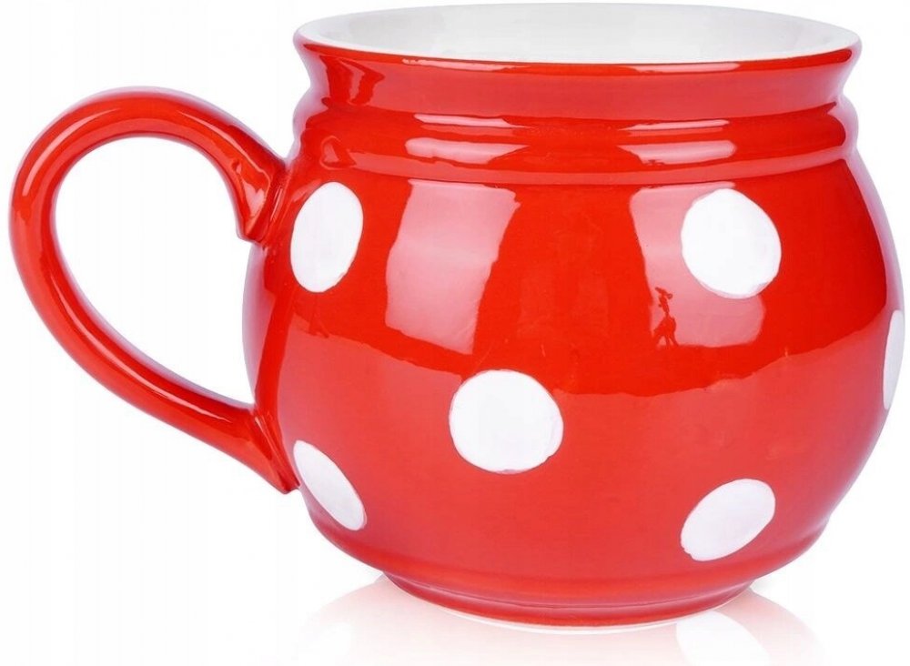 ⭐ SOLIDNÍ - Vyrobeno z vysoce kvalitní keramiky v červené barvě s dekorem v podobě bílých, velkých puntíků. Při správném používání vydrží dlouhá léta.