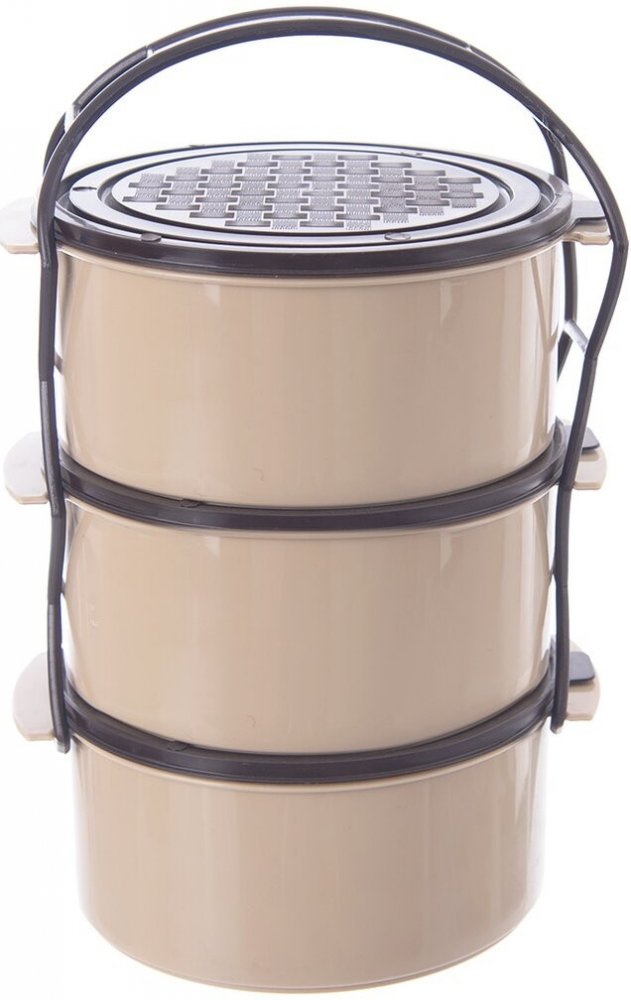 Plastový jídlonosič je určen pro přenášení potravin. 3 misky. Každá miska je opatřena víčkem, snadné sepnutí pomocí spony. Materiál: miska-plast PP, víčko a spona-plast PE. Barva dle aktuální nabídky. Rozměry: pr. 16,5 cm, v. 24 cm, objem 3x 1,5 l. Lze použít do myčky na nádobí, do chladničky i mrazničky, taktéž do MVT - bez víčka! Náhradní díly: víčko 120907, držák 181712.
