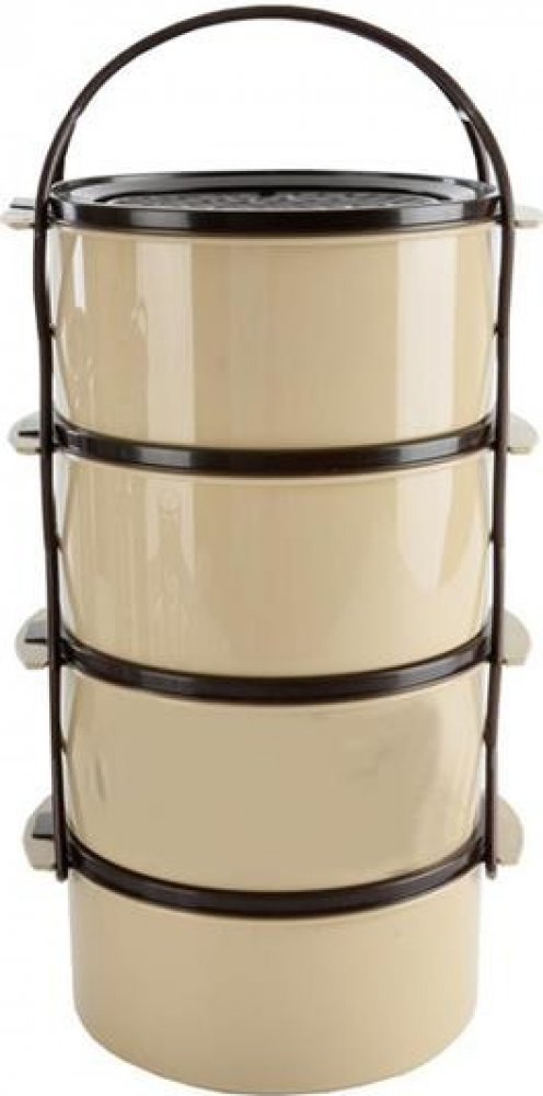 Plastový jídlonosič je určen pro přenášení potravin.Vlastnosti:- 4 misky- Každá miska je opatřena víčkem, snadné sepnutí pomocí spony- Materiál: plast. - Rozměry: pr. 16,5 cm, v. 31 cm, objem 4x 1,5 l- Lze použít do myčky na nádobí, do chladničky i mrazničky, taktéž do MVT - bez víčka!
