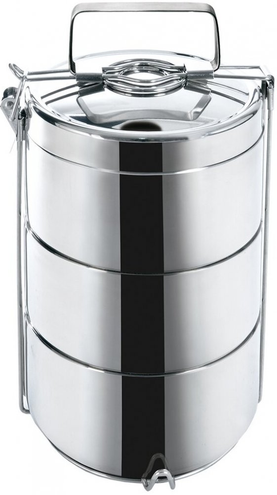 Termojídlonosič nerezový 3 patrový pro přenášení pokrmů, který dlouho zachová jejich teplotu. Součástí je kovový stojan, opatřený přezkou, která zajistí jeho pevné uzavření a vrchní poklice. Velmi kvalitní zpracování.
