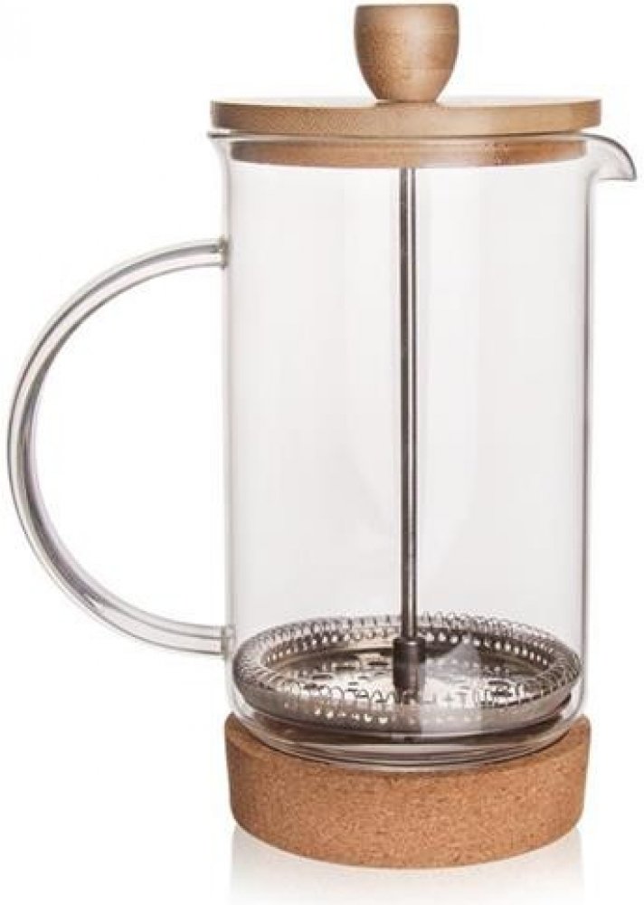 - Materiál: borosilikátové sklo (max 180 °C), nerez, bambus, korek (odnímatelná část)