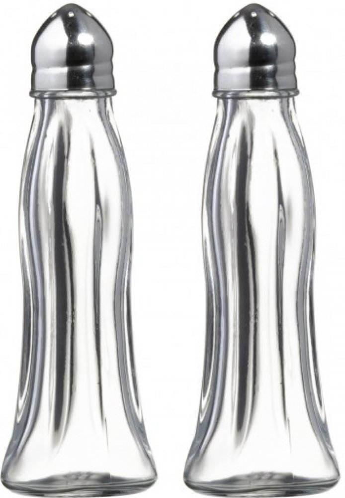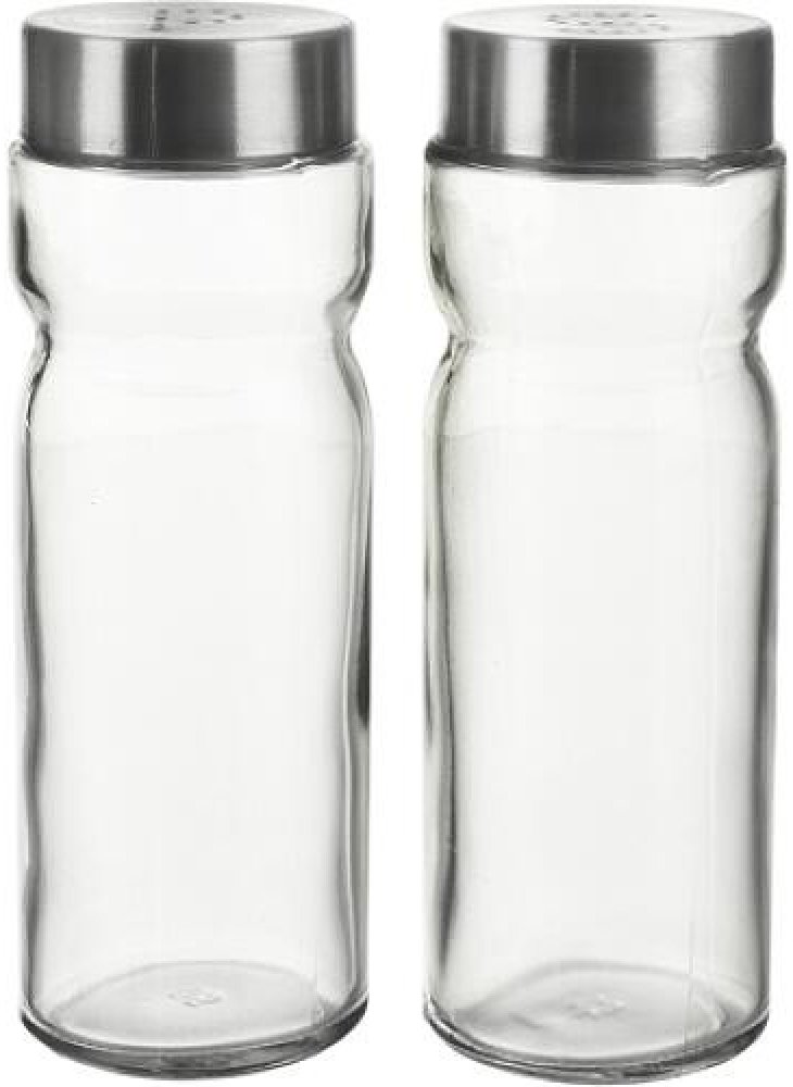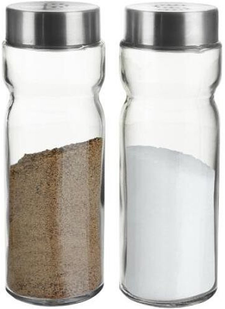 Solnička a pepřenka patří k základnímu vybavení do vaší kuchyně. Tato dochucovací sada obsahuje dvě vroubkované nádoby z odolného skla, které zaujmou pozornost především svým neobvyklým tvarem. Její součástí jsou také dvě kovová víčka. Nabízí univerzální využití, kromě soli a pepře ji můžete použít i na další oblíbené koření.