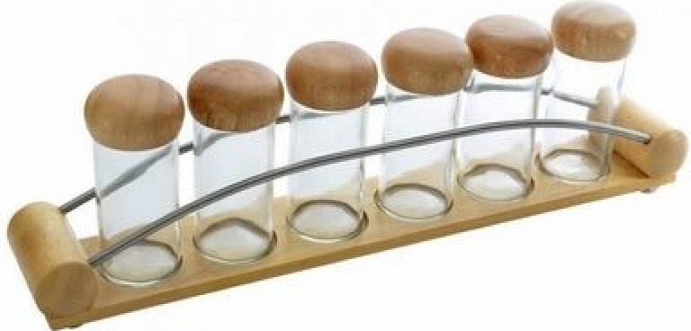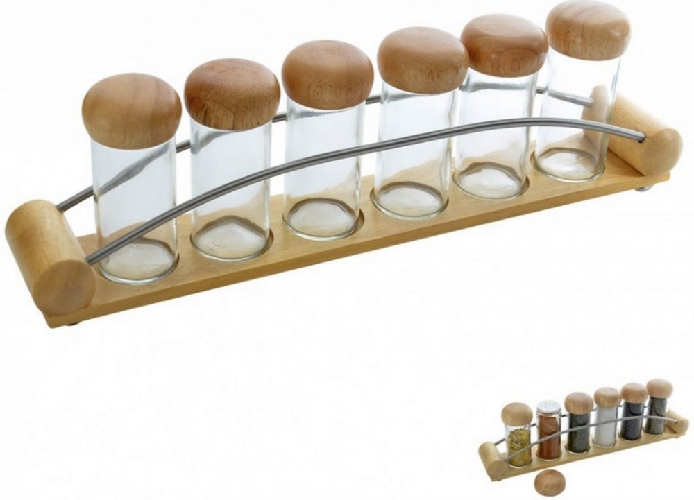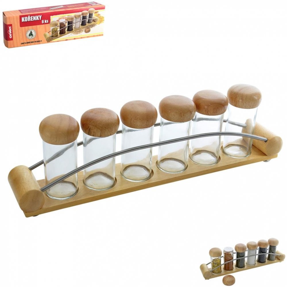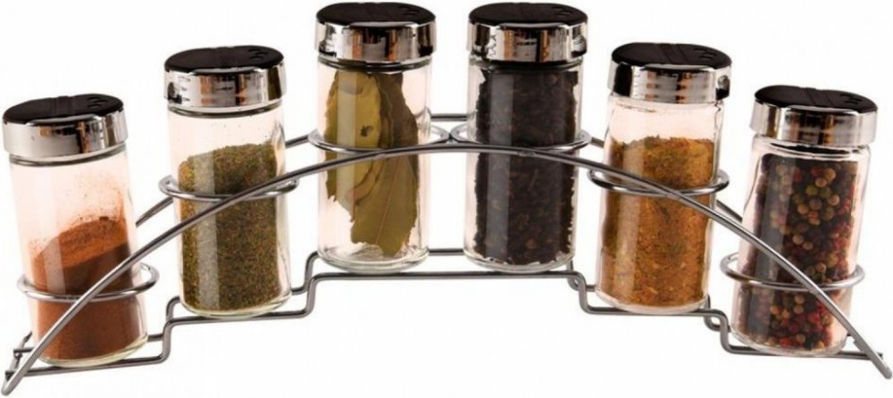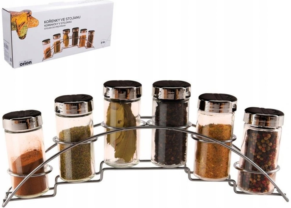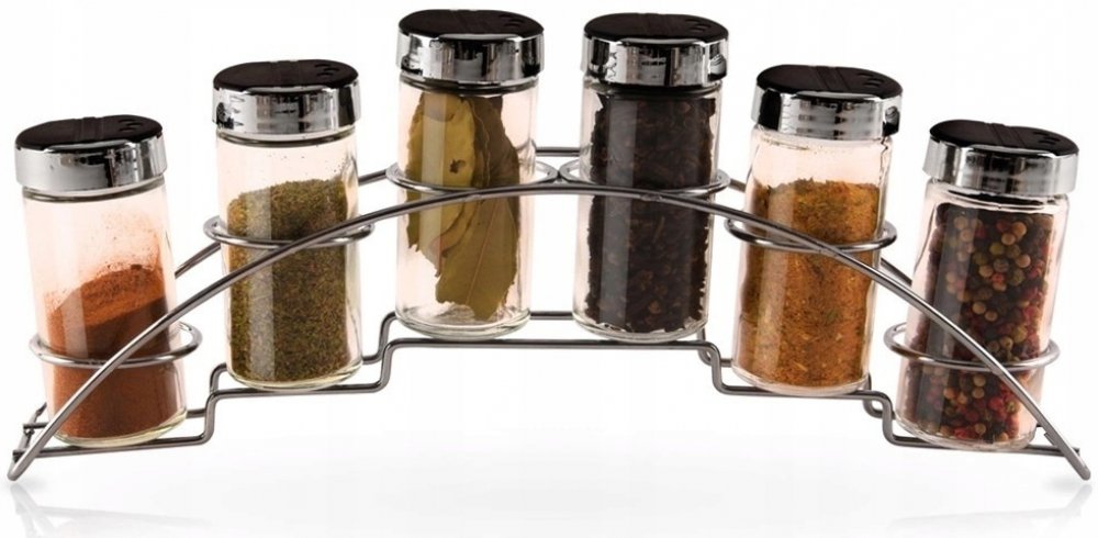 Drátěný stojan se 6ti kořenkami Vám umožní mít Vaše oblíbené koření vždy po ruce.